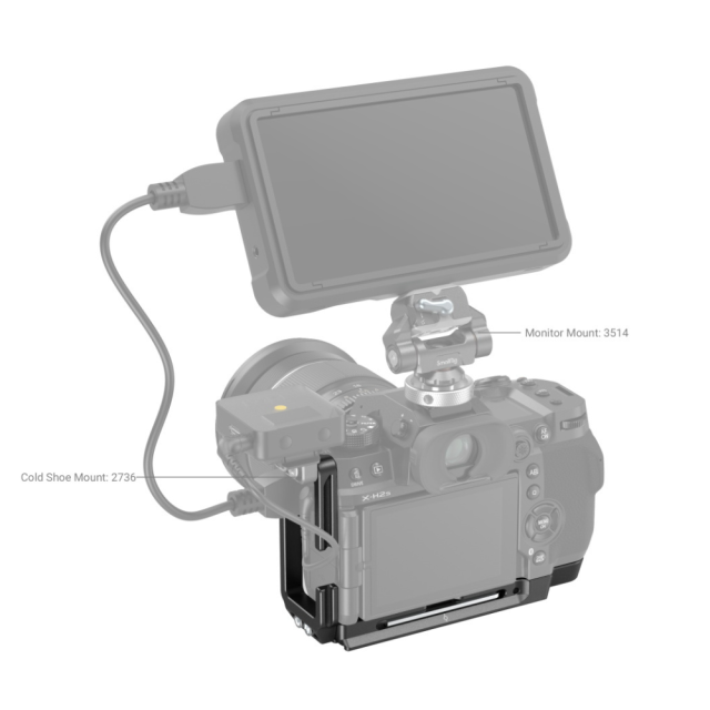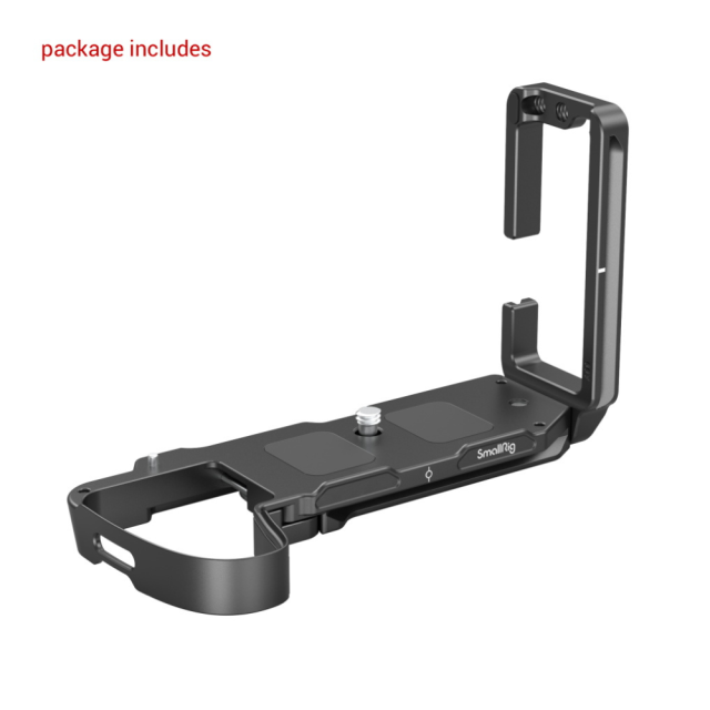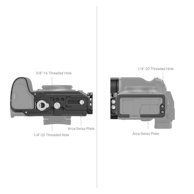 El soporte en L SmallRig para la cámara FUJIFILM X-H2S 3928 está diseñado para permitir cambiar rápidamente entre la orientación horizontal y vertical, al tiempo que mejora la experiencia de sujeción. El soporte en L se fija mediante un tornillo de 1/4"-20 y un pasador de posicionamiento antirrotación en la parte inferior; está equipado con almohadillas protectoras contra arañazos y un brazo de sujeción de la batería que se ajusta perfectamente a la cámara y aumenta la comodidad de sujeción. Su placa base y la placa lateral Arca-Swiss cuentan con una marca central. La placa base cuenta con orificios roscados de 1/4"-20 para la placa de fijación rápida Manfrotto 1280, el asa lateral 2093, etc., un punto de montaje Arca-Swiss en la parte inferior para el trípode Arca-Swiss y el DJI RS 2/RSC 2, y un orificio integrado para las correas de mano 3848 y 2456. En la parte superior de la placa lateral hay dos orificios con rosca de 1/4"-20 que se pueden utilizar junto con la zapata fría BUC2736 para conectar micrófonos, luces y otros dispositivos. La placa lateral deslizante permite acceder al cable HDMI y se puede ajustar hacia delante y hacia atrás para abrir la pantalla LCD 180°. Gracias a su diseño con hueco, la pantalla se puede girar aproximadamente 60°. Además, se incluye un destornillador plano y una llave hexagonal para un montaje y desmontaje rápidos.