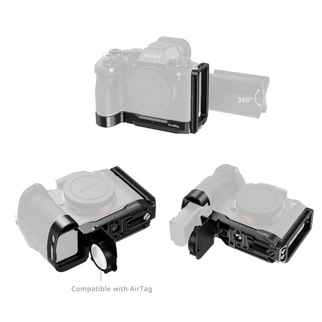 La placa de montaje en L SmallRig para Sony Alpha 1 II / Alpha 9 III 5188 facilita el cambio rápido entre la orientación horizontal y vertical. Está diseñada para adaptarse a las curvas de la cámara y mejora el agarre al proporcionar un apoyo adicional para el meñique. El soporte se fija de forma segura a la parte inferior de la cámara mediante un tornillo de 1/4"-20 y está equipado con almohadillas de silicona que evitan los arañazos. También es compatible con los dispositivos de seguimiento AirTag, que te ayudarán a localizar cámaras y otros dispositivos.
