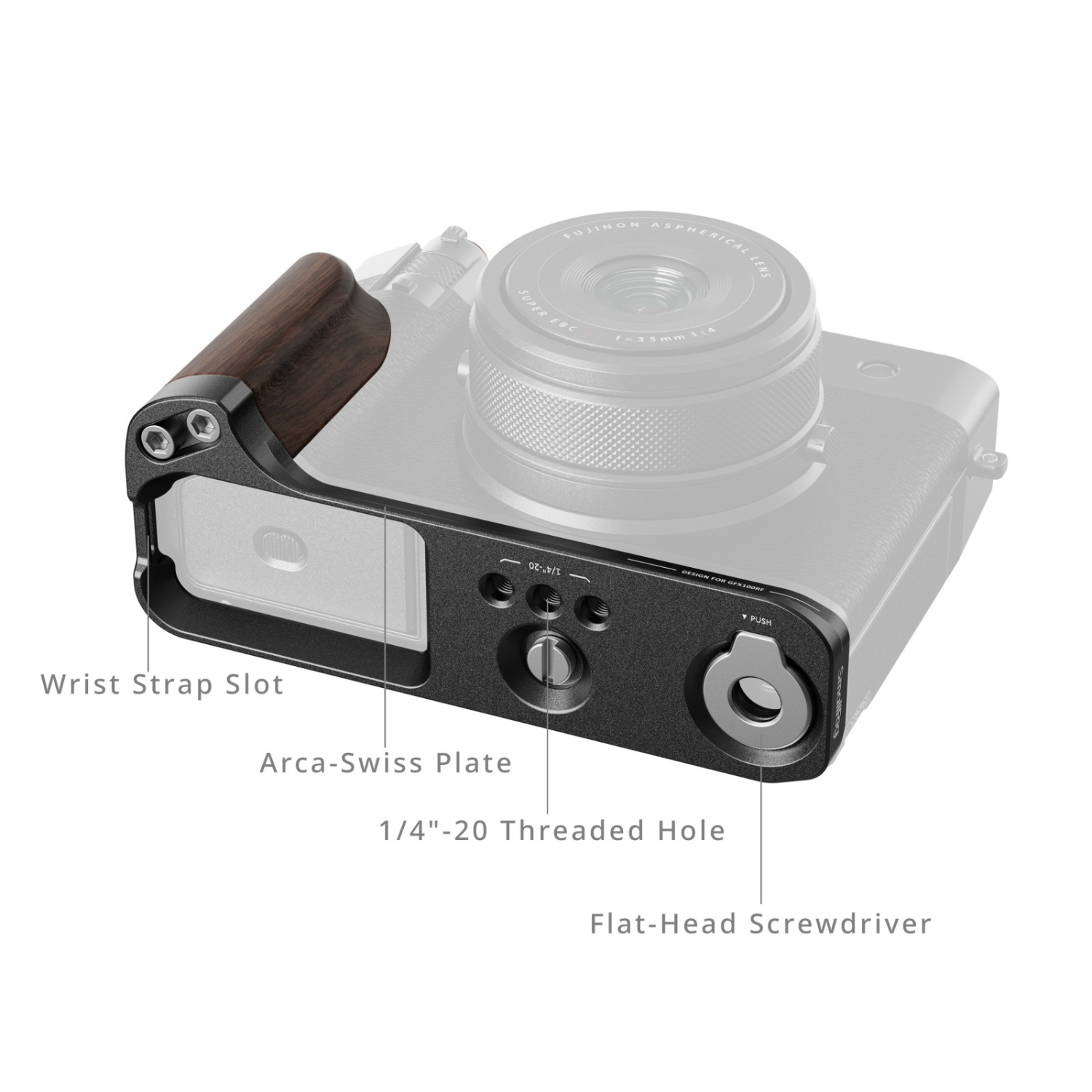 SmallRig L-Shape Mount Plate with Wooden Handle for FUJIFILM GFX100RF (Black) 5266