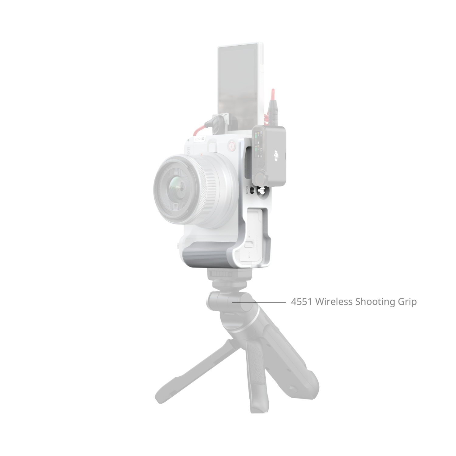 - Soporte Cold Shoe integrado en la parte inferior para fijar micrófonos, luces y otros accesorios en orientación vertical;