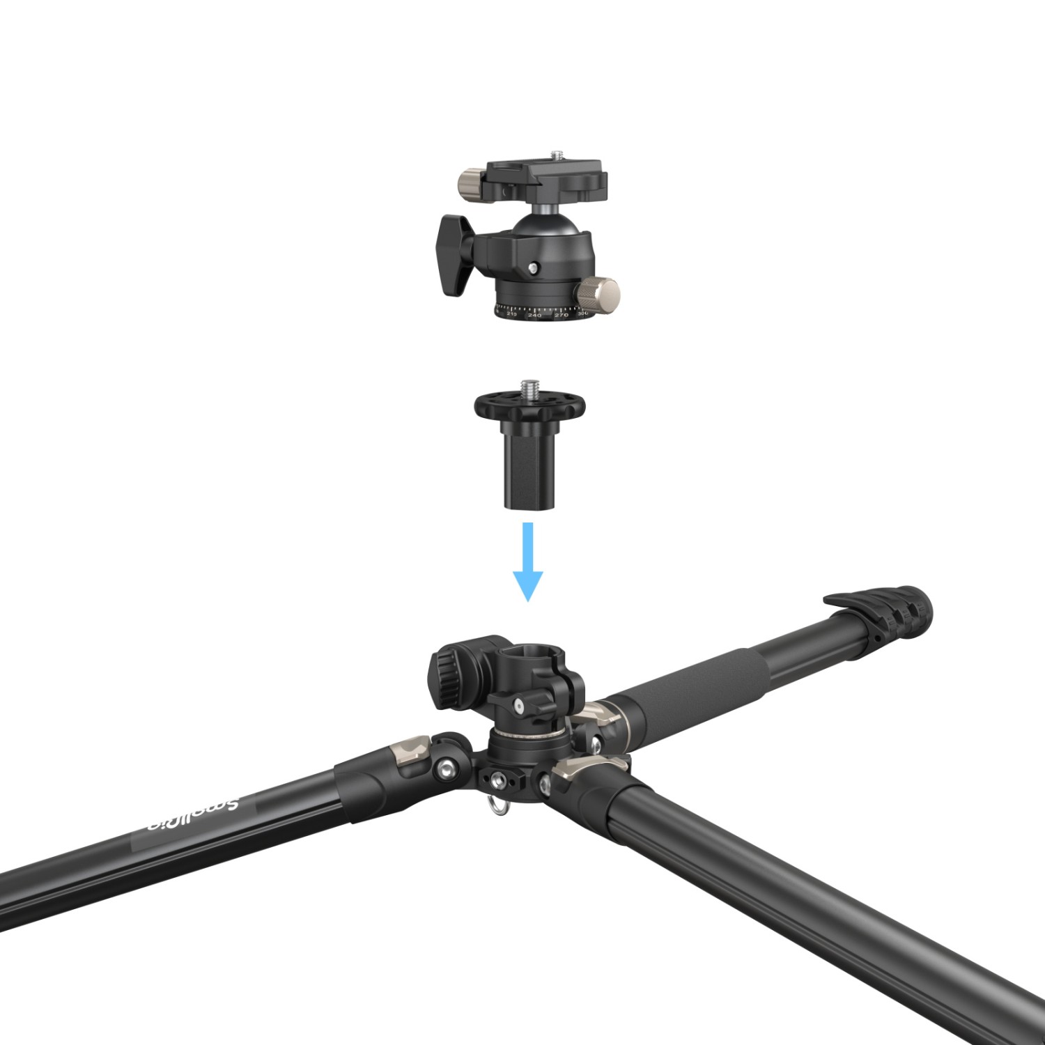 El trípode SmallRig Lateral Center Column CT200 4288 está cuidadosamente diseñado para grabaciones, retransmisiones en directo, vlogs, etc. La columna se encuentra en la parte superior del trípode para ahorrar espacio y se puede girar a la orientación vertical. Las patas de cuatro secciones con cierres de palanca permiten ajustar la altura de trabajo hasta 185 cm en cuestión de segundos, y la columna central extraíble se puede girar para tomas desde un ángulo bajo. Al desmontar una de las patas y acoplarla al cabezal, puedes convertir el trípode en un monopié. El tornillo superior de 3/8"-16 es compatible con diversos cabezales fluidos para fotografía y grabación de vídeo; y el orificio roscado de 1/4"-20 en las articulaciones de las patas permite acoplar los brazos Magic Arm 3874 y 3959 para micrófono, monitor, sistema de transmisión de imagen, etc. Está equipado con una bolsa para contrapesos integrada para aumentar la estabilidad. Las almohadillas de silicona de las patas tienen puntas ocultas que se adaptan a terrenos de diversa complejidad y se pueden utilizar incluso tras retirar las almohadillas de silicona de las patas.