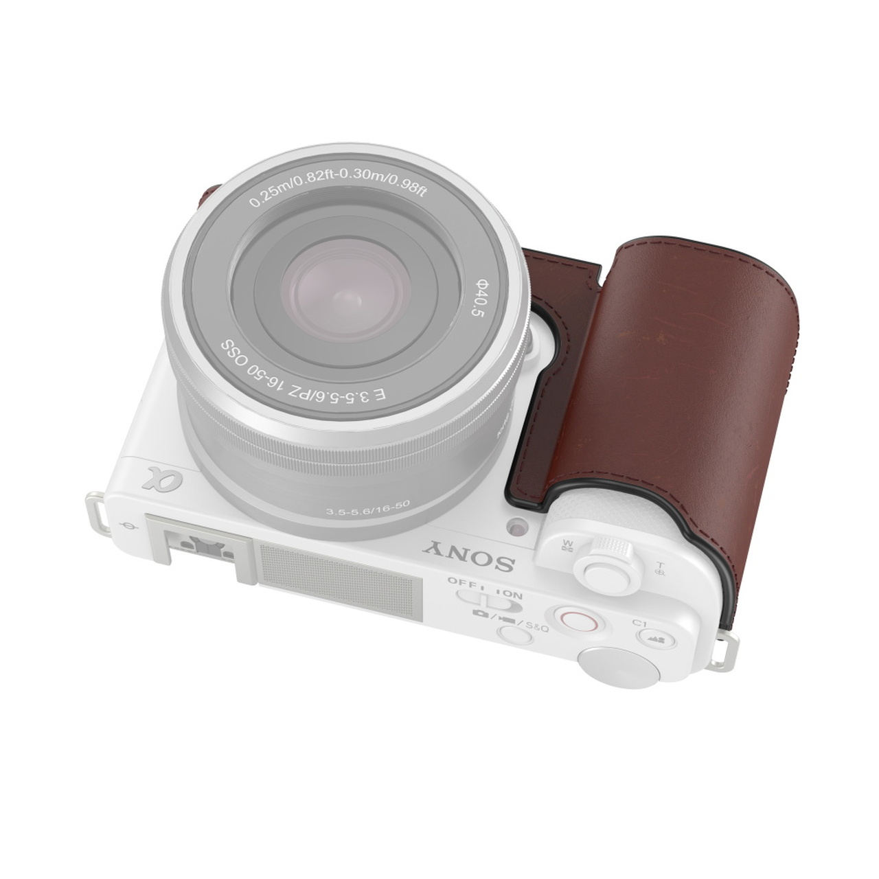 1. Funda de media carcasa de piel auténtica diseñada específicamente para la cámara Sony ZV-E10.