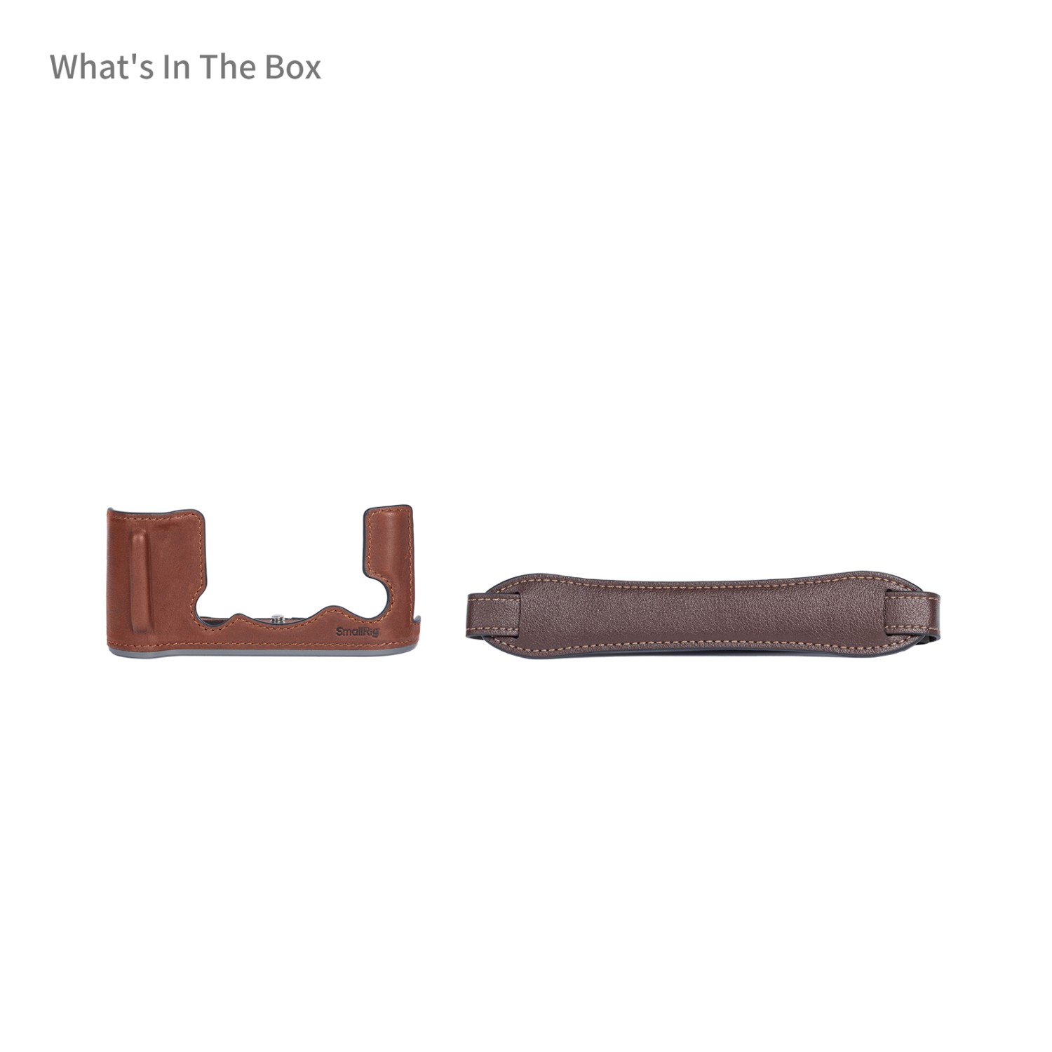 El kit de fundas de cuero SmallRig Half Case Kit para la cámara FUJIFILM X-T50 (marrón) 4710 está diseñado para proteger la cámara y, al mismo tiempo, realzar su encanto vintage y su calidad. El kit incluye una funda de cuero y una correa para el hombro. Empuñadura de espuma integrada para aumentar la firmeza del agarre con los dedos. El material resistente y transpirable de la funda de piel plena flor realza la estética retro y el aspecto de la cámara, mientras que su forro de ante garantiza la protección contra arañazos. Gracias al tornillo de 1/4"-20 integrado en la base, la funda se fija directamente a la cámara sin necesidad de herramientas adicionales. La funda permite un acceso sin obstáculos a las funciones clave de la cámara, como el compartimento de la batería, el modo de enfoque, la ranura para la tarjeta, etc. El marco integrado de aluminio aeronáutico garantiza una sujeción firme y ofrece protección contra los golpes. La parte inferior cuenta con un orificio roscado de 1/4"-20 que permite el montaje directo en un trípode sin necesidad de desmontar la mitad de la funda. Además, el paquete incluye una correa para el hombro de PU, suave y cómoda, para facilitar el transporte.