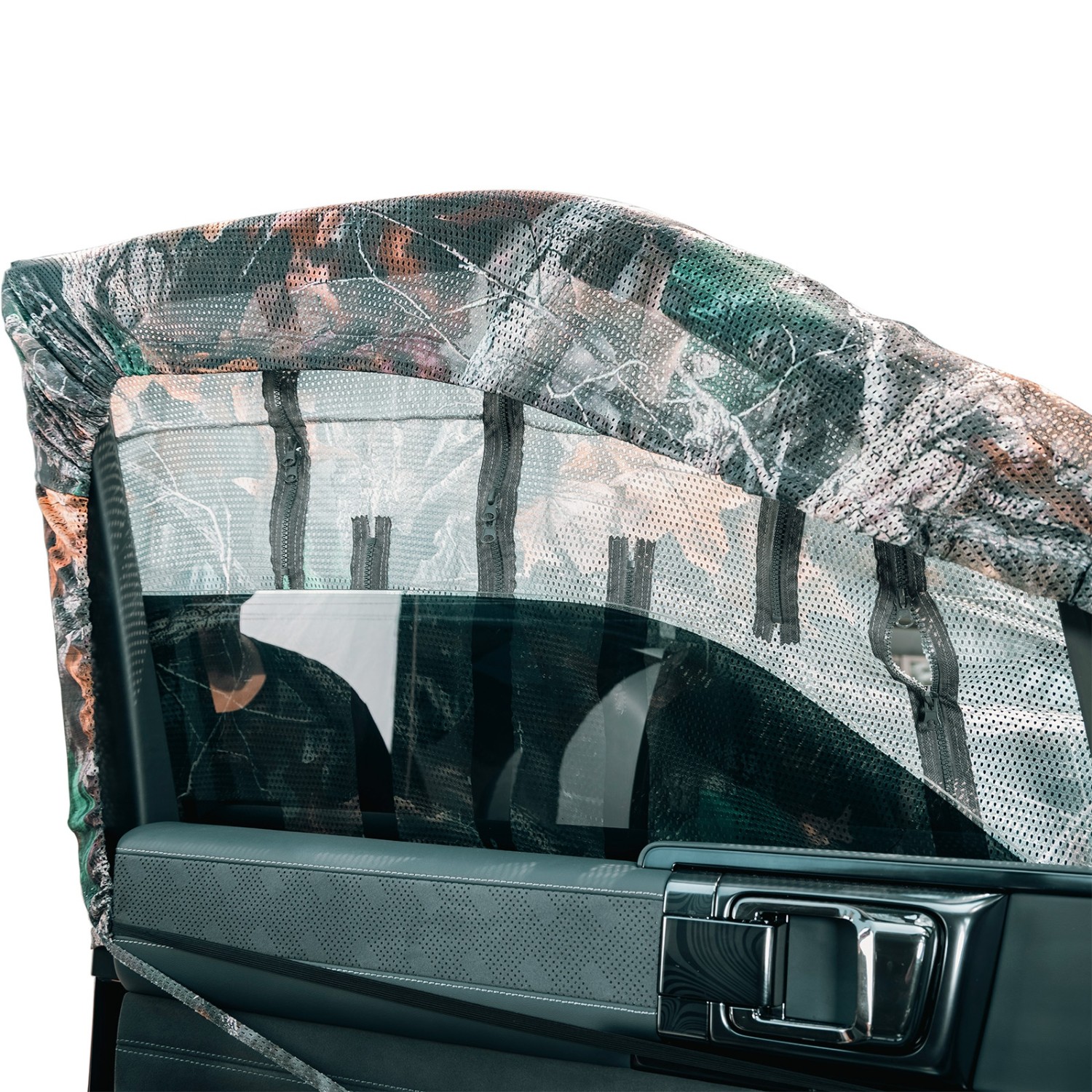 Las cremalleras multidireccionales permiten un acceso rápido a las ventanas de observación, para que puedas vigilar los alrededores sin tener que quitar la cortina. El diseño permite la movilidad total de las ventanas, para que puedas regular fácilmente la ventilación en condiciones de calor o frío extremos. El recorte especial para el retrovisor garantiza la visibilidad al conducir, por lo que puedes mantenerte en movimiento sin tener que quitar las cortinas.