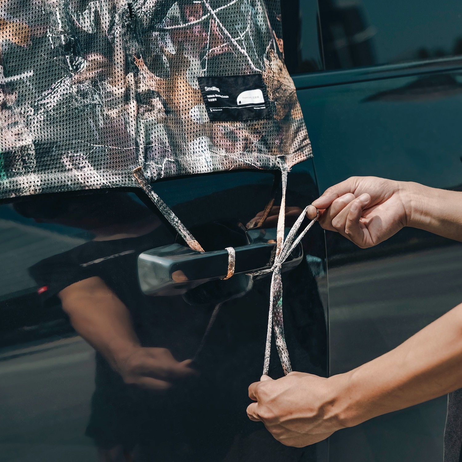La instalación es sencilla: coloca la cortina en la ventana y fíjala en dos puntos con las correas, que garantizan una sujeción segura y universal en la mayoría de los SUV todoterreno. El tejido está tratado con una capa repelente al agua resistente que ofrece una protección fiable contra la lluvia, la nieve, el polvo e incluso los molestos insectos, para que puedas fotografiar cómodamente en cualquier entorno.
