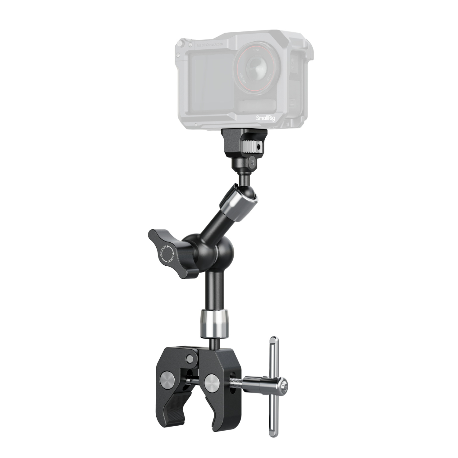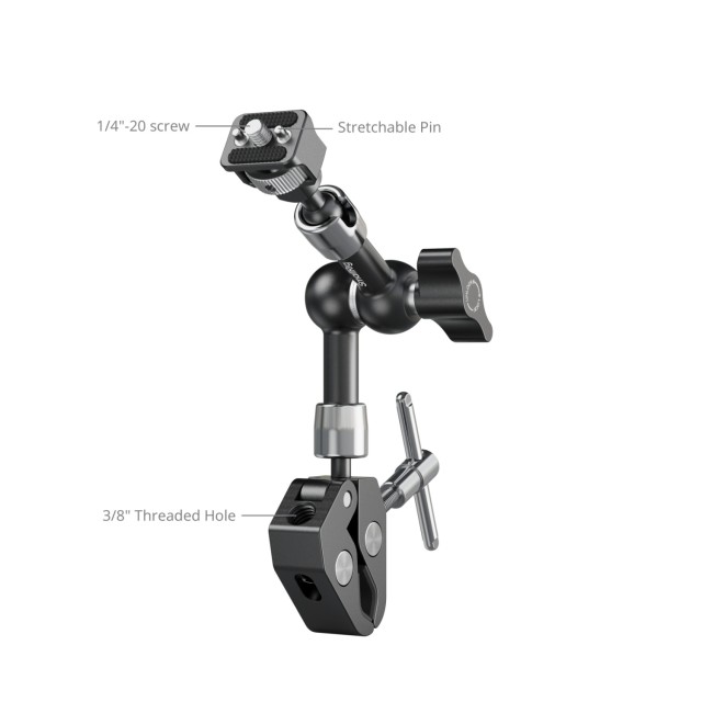 El brazo mágico SmallRig con pinza en forma de cangrejo (7") 5310 consta de un brazo mágico y una pinza en forma de cangrejo. Un extremo está equipado con un tornillo de 1/4"-20 y pasadores extensibles, provistos de un tornillo moleteado con pulgar para una fácil fijación sin herramientas, junto con otro orificio de fijación para apretar con la llave Allen incluida.