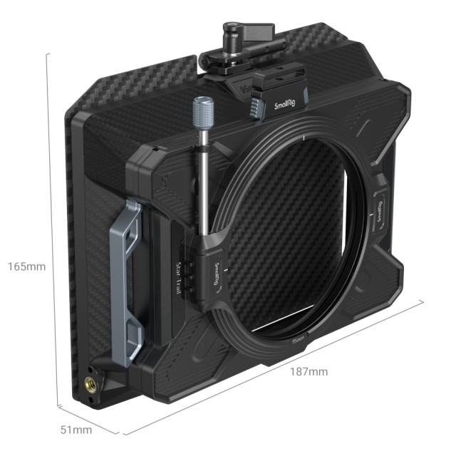 El kit también incluye un marco para filtros (4x5,65") con un marco de aleación de aluminio y un diseño antideslizante, que se puede instalar rápidamente sin dejar huellas dactilares. Para montar un filtro de 4x4", adquiera el marco de filtro 3648; para montar varios filtros deslizantes a la vez en entornos complejos, adquiera el kit de marcos de filtro (4x5,65") 3649 o el kit de filtros VND 3651. Gracias al sistema de filtros con forma adaptada, es posible capturar imágenes ultra gran angulares utilizando una distancia focal ≥ 14 mm. Entre otros accesorios, cabe destacar el parasol para el objetivo con instalación magnética y diseño de fijación rápida, y el visor superior de fibra de carbono que se abre 180°. Para evitar un mayor deslumbramiento, adquiera el juego de visores laterales (95 mm) 3647; para sujetar y proteger el objetivo, adquiera el soporte 3652. Nuestras cajas mate de la serie Star-Trail utilizan una gran cantidad de aleación de magnesio ligera y fibra de carbono, lo que proporciona soluciones ligeras para la fotografía.