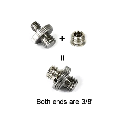 Adaptador roscado con rosca interior de 1/4" a rosca exterior de 3/8". Es compatible con nuestro adaptador de doble rosca de 1/4" a 3/8" y funciona como un adaptador de doble rosca de 3/8" a 3/8". Contenido: 5 adaptadores roscados nuevos de 1/4" a 3/8". Material: acero inoxidable. Peso neto: 8 g. Dimensiones del paquete: 105 x 70 x 4 mm. Peso del paquete: 9 g. Notas: No incluye el pasador roscado de doble cabeza.