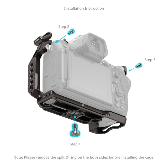 Nota: Antes de instalar esta jaula, retira las anillas en D de los laterales de la cámara.