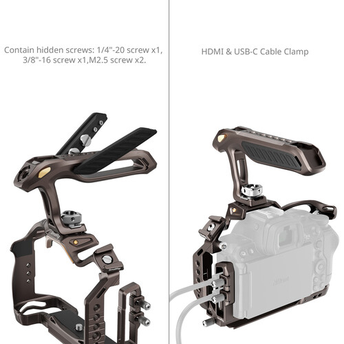 El kit de jaula para cámara SmallRig «Night Eagle» es una solución resistente y con un diseño adaptado para mejorar el conjunto de las cámaras Nikon Z5, Z6, Z7, Z6 II, Z7 II o Z5 II. La jaula está fabricada en aluminio ligero, mantiene un acceso total a los controles de la cámara y, al mismo tiempo, aumenta la flexibilidad de montaje gracias a varias roscas de 1/4"-20 y 3/8"-16, una guía NATO y un conector QD. Este kit incluye una empuñadura superior extraíble para un mejor manejo, una abrazadera para el cable HDMI/USB-C que garantiza la conexión y un soporte extraíble para la zapata. Su base tipo Arca permite un montaje rápido en un trípode, por lo que es ideal para cineastas, vloggers y fotógrafos que buscan un equipo fiable de nivel profesional.