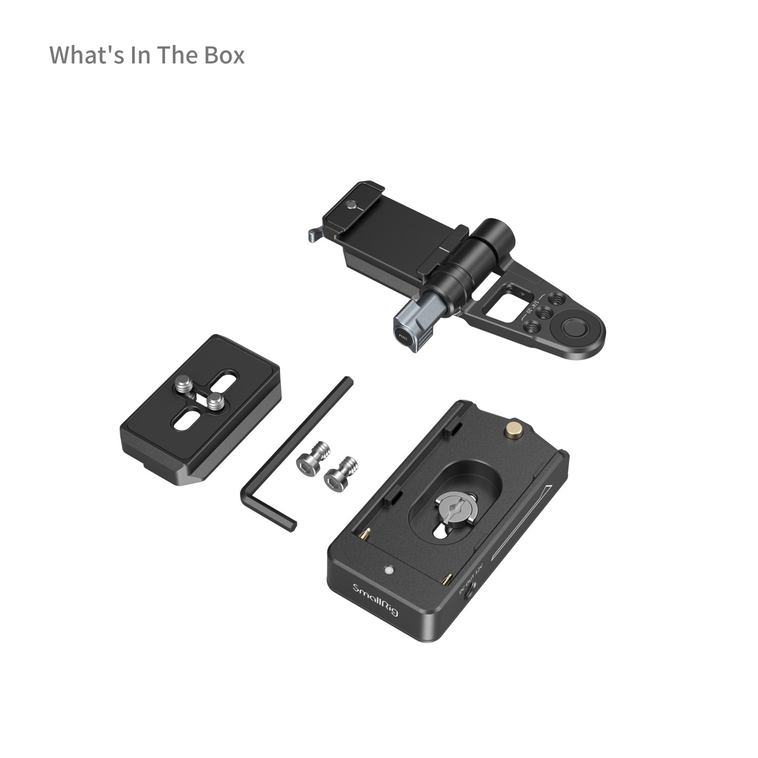El kit de placa de montaje con adaptador de batería NP-F de SmallRig para cámaras sin espejo 4696 está diseñado para ofrecer una solución compacta, ligera y rápida de alimentación «todo en uno» con baterías NP-F para los usuarios de cámaras sin espejo. La placa de montaje utiliza un diseño de montaje trasero que equilibra eficazmente el centro de gravedad del objetivo, lo que hace que el disparo a mano alzada sea más eficiente energéticamente; su diseño plegable la hace portátil y fácil de guardar. La placa de montaje cuenta con una abrazadera Arca-Swiss integrada, y las jaulas que tengan una placa Arca-Swiss incorporada pueden encajarse directamente en la instalación. La placa de montaje cuenta con una placa de fijación rápida Arca-Swiss integrada en la parte inferior, que se puede acoplar rápidamente a un trípode Arca-Swiss para cambiar rápidamente entre el uso a mano alzada y el uso con trípode; la placa de fijación rápida Arca cuenta con un pasador anticaída integrado que evita eficazmente que el equipo se caiga.