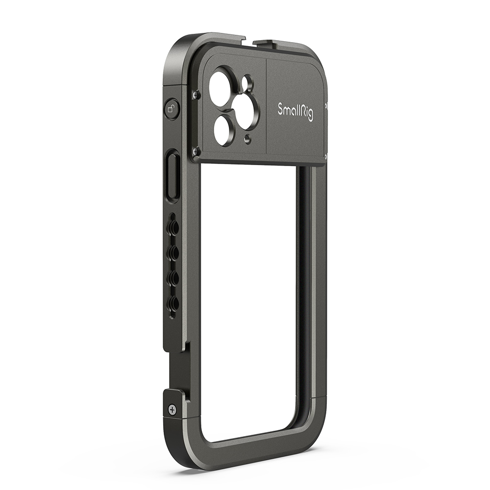 También cuenta con varios orificios roscados de 1/4" en la parte superior, inferior, izquierda y derecha para acoplar diversos accesorios según tus necesidades, como la empuñadura lateral de aluminio SmallRig para la jaula para smartphone HSS2424, la empuñadura superior SmallRig mini para cámaras ligeras (tornillos de 1/4"-20) HTS2756, el minitrípode de mesa SmallRig BUT2429, etc. Admite la captura tanto horizontal como vertical. Las almohadillas de EVA integradas ayudan a amortiguar los golpes y evitan que el teléfono se raye. El soporte para objetivos con rosca de 17 mm en la parte trasera permite acoplar fácilmente al teléfono cualquier objetivo con rosca de 17 mm. El nuevo cierre Quick-Lock proporciona una sujeción más firme y una forma más rápida de montar y desmontar el teléfono, además de mayor seguridad y estabilidad. Una vez bloqueado, el teléfono no se soltará por un toque accidental. La carcasa es ligera y fácil de transportar.