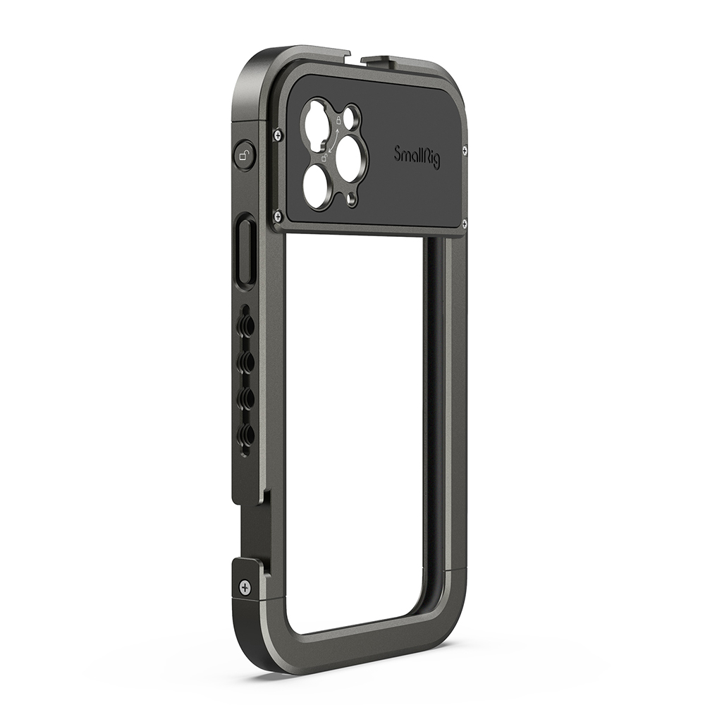 También cuenta con varios orificios roscados de 1/4 en la parte superior, inferior, izquierda y derecha para fijar diversos accesorios según tus necesidades, como el asa lateral de aluminio SmallRig para la jaula de smartphone HSS2424, el asa superior SmallRig para cámaras ligeras (tornillos de 1/4"-20) HTS2756, el minitrípode de mesa SmallRig BUT2429, etc. Admite la captura tanto horizontal como vertical. Las almohadillas de EVA integradas ayudan a amortiguar los golpes y evitan que el teléfono se raye. El soporte para objetivos Moment de la serie M (V2) situado en la parte trasera permite acoplar fácilmente cualquier objetivo de la serie M (V2) al teléfono. El nuevo cierre Quick-Lock garantiza una sujeción más firme y una forma más rápida de acoplar y desacoplar el teléfono, además de ser más seguro y estable. Una vez bloqueado, el teléfono no se deslizará por un toque accidental. La carcasa es ligera y fácil de transportar.