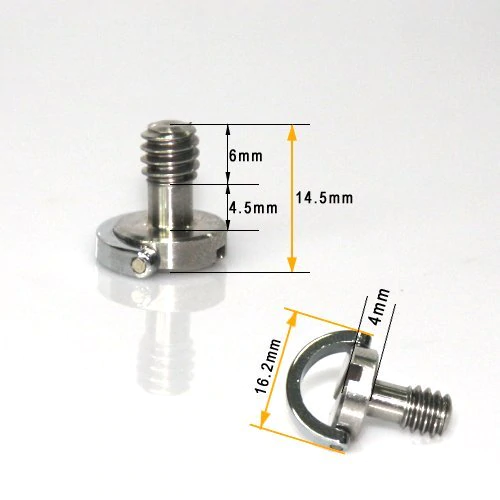 Tornillo de fijación rápida para montar una cámara con rosca estándar de 1/4"-20. El cuerpo principal está fabricado en acero inoxidable y la anilla giratoria en aleación de zinc. Antes de realizar la compra, compruebe el tamaño para asegurarse de que es compatible con su cámara y su placa de fijación rápida. Notas: El paquete incluye 2 tornillos de fijación rápida de 1/4".