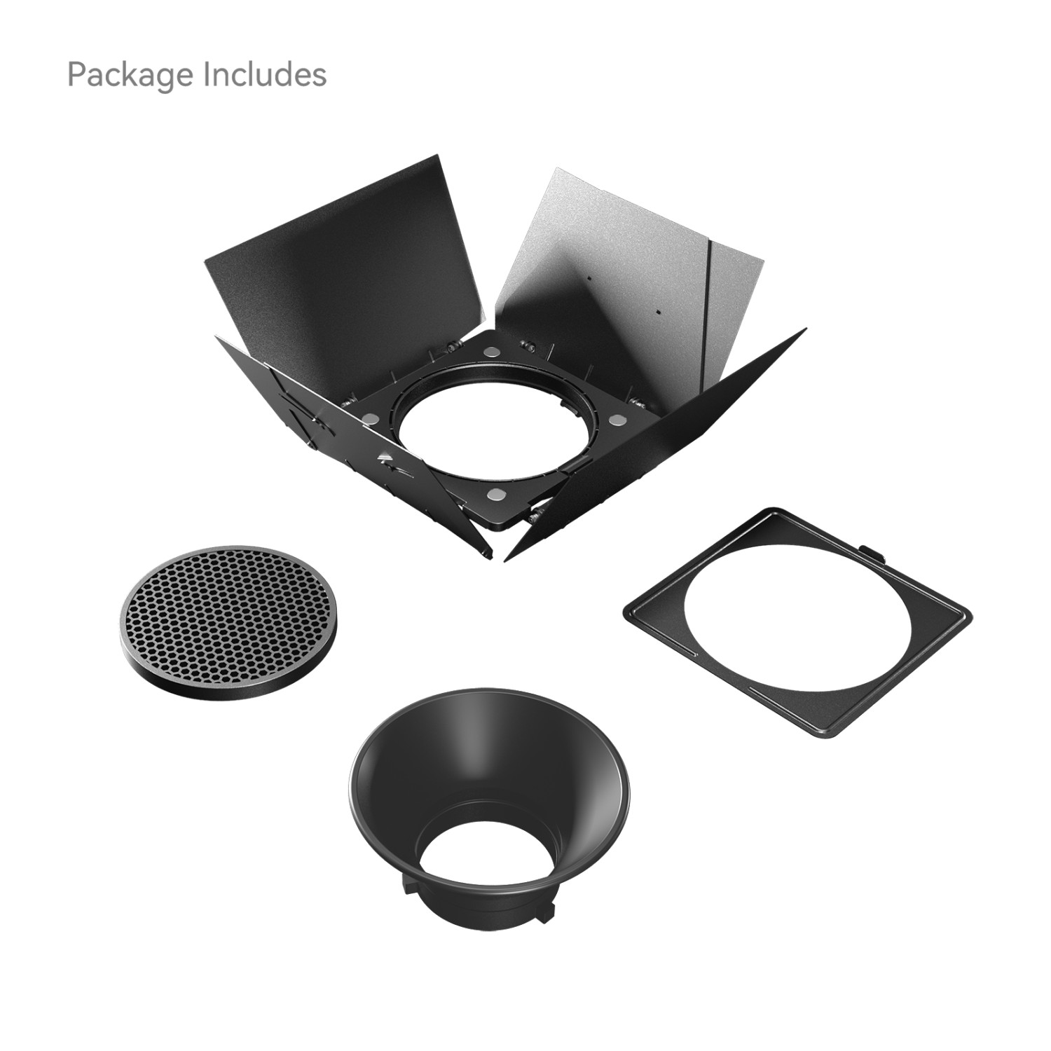 • Las láminas más grandes controlan y moldean mejor la salida de luz. Satisfacen tus necesidades en diversos escenarios. Ajustables con precisión para iluminación de gran superficie o local