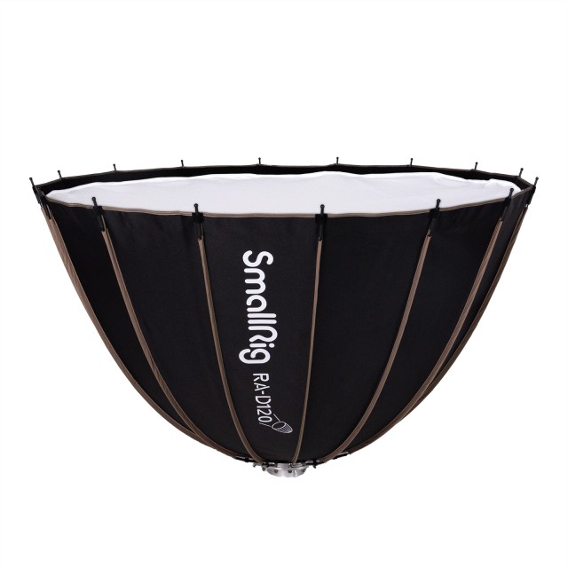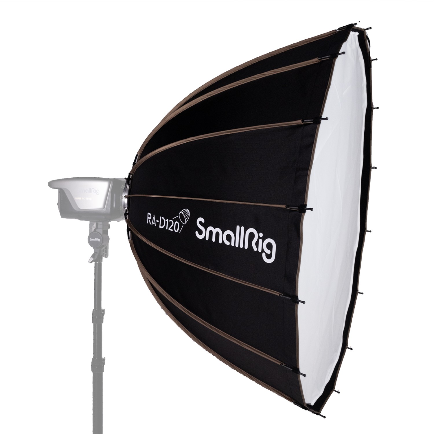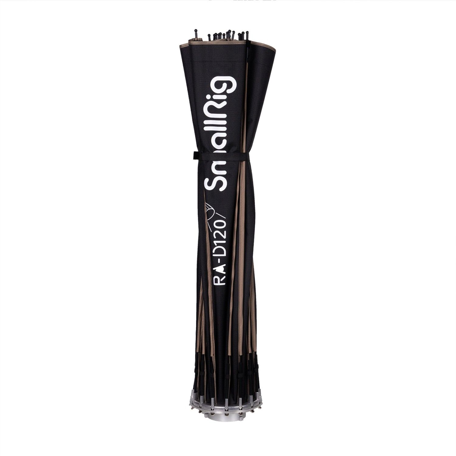 El SmallRig RA-D120 Parabolic Softbox es un difusor universal con un diámetro de 120 cm. El soporte universal Bowens es compatible con las luces SmallRig RC 120D/RC 120B/RC 220D/RC 220B/RC 350D/RC 350B/RC 450D/RC 450B con fuente de luz puntual y otras luces con soporte Bowens disponibles en el mercado. La nueva generación de diseño de fijación rápida, desarrollada de forma independiente, permite una fácil instalación y desmontaje en 15 segundos para una mayor comodidad del usuario. Se suministra de serie con una rejilla de panal de 45° para aumentar la direccionalidad en diferentes escenarios. Utiliza un material blando de calidad industrial y un acabado altamente reflectante; dos difusores garantizan un suavizado eficaz de la luz o una mayor transmisión de la luz para satisfacer diferentes requisitos.