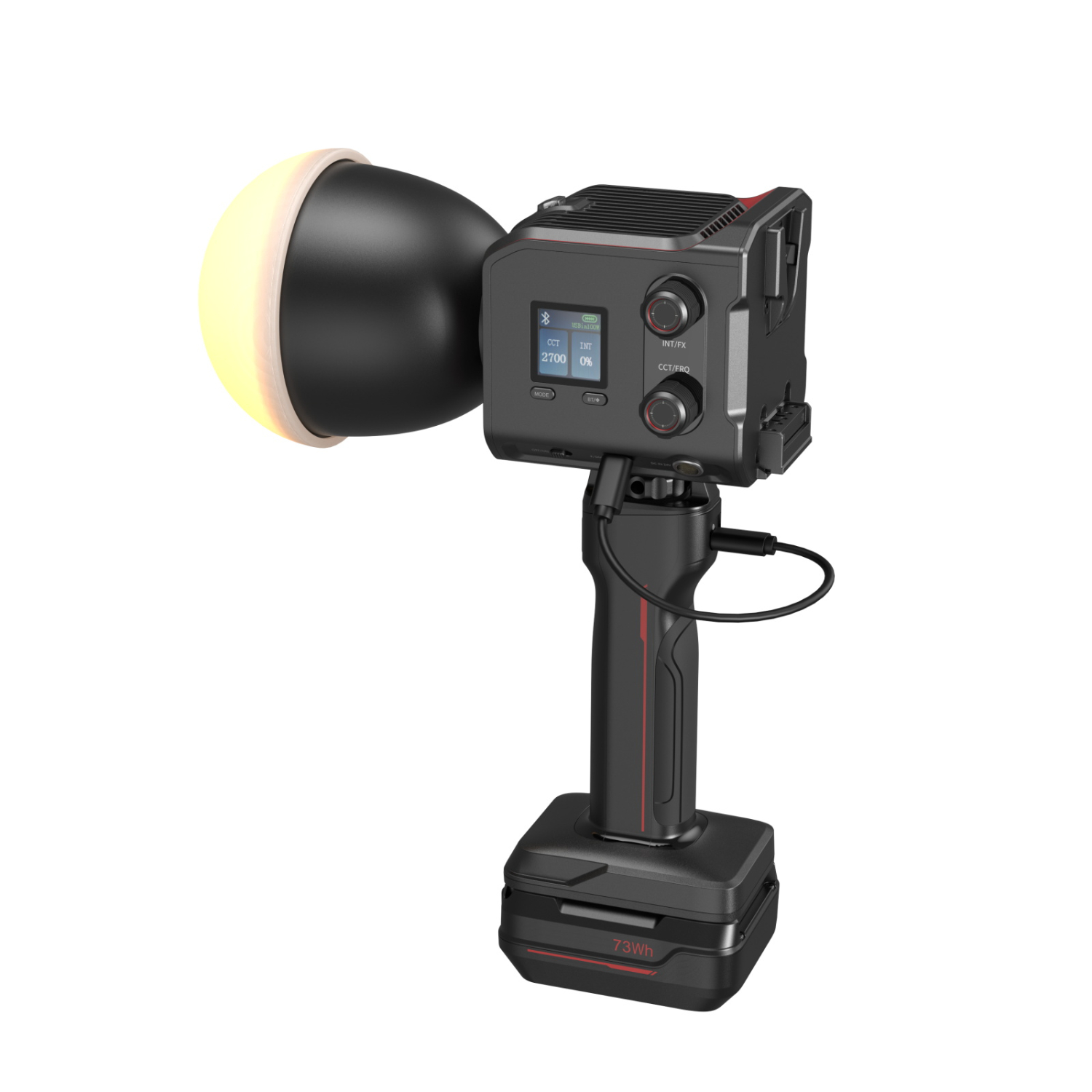 La luz ofrece opciones de alimentación versátiles que permiten el funcionamiento inalámbrico con baterías V-mount o NP-F970. También se puede cargar a través del puerto USB-C utilizando accesorios como una empuñadura de alimentación, un powerbank PD o un cable de carga, así como mediante un adaptador de CA a CC. Incluye un powerbank SH73 con diseño de empuñadura que admite hasta 45 minutos de funcionamiento a máxima potencia y garantiza una sesión fotográfica ininterrumpida con un rápido cambio de baterías.