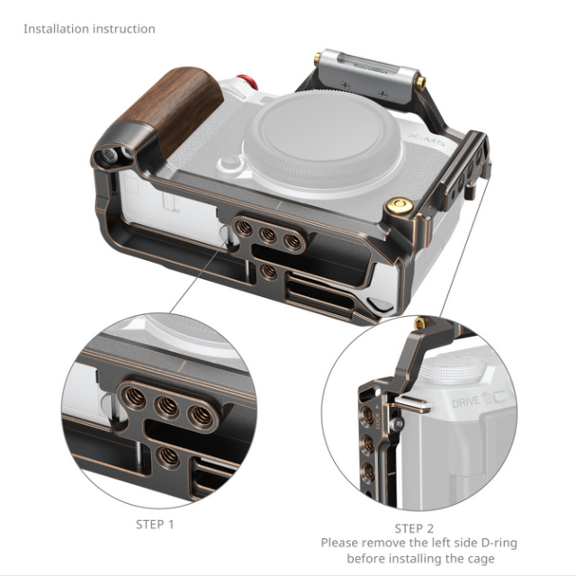 La jaula SmallRig «Retro» para la cámara FUJIFILM X-M5 4892 combina una estética vintage con una funcionalidad moderna y ofrece una protección resistente y opciones de accesorios versátiles. Su cuerpo de aleación de aluminio, su empuñadura de madera y sus múltiples interfaces de montaje la convierten en la compañera perfecta para mejorar tus experiencias fotográficas.