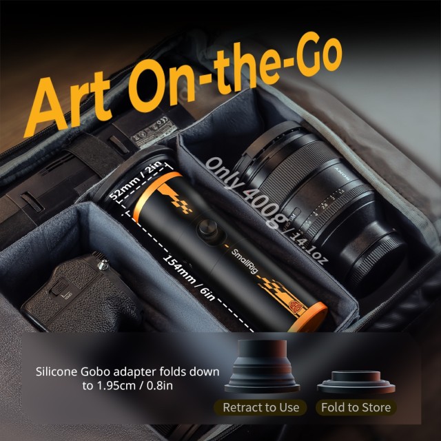 La luz de vídeo LED portátil SmallRig RF 10C «BumbleBee Edition» 5512 es una pieza fundamental del sistema de iluminación portátil SmallRig. Esta luz de vídeo compacta y ligera, fabricada en aleación de aluminio con una elegante combinación de colores oscuros, es a la vez elegante y práctica, y cabe fácilmente en cualquier mochila fotográfica. Gracias a sus LED de cuatro colores (naranja, azul, blanco y rojo) con una potencia máxima de 10 W y un CRI Ra≥96, TLCI≥98, la iluminación alcanza un1,570lux@0.5m/5600K. Esta fuente de luz de alta calidad garantiza una reproducción profesional del color y un ajuste del brillo que se adapta a los distintos requisitos de la fotografía. Está equipada con más de 20 filtros de luz y admite una serie de efectos de proyección atmosféricos que mejoran tu iluminación y ofrecen más posibilidades creativas. El espejo convexo con diseño push-pull frontal facilita el ajuste del tamaño del haz y permite un enfoque preciso en un rango más reducido (ángulo de enfoque ajustable de aproximadamente 10° a 60°). El ajuste del zoom ofrece un control fluido y una excelente amortiguación para un ajuste suave del rango de apertura. Gracias a la nueva función anti-manipulación, es necesario girar el botón para encender la luz, lo que evita eficazmente el encendido involuntario que podría provocar un consumo innecesario de energía. El mango, con un diámetro de tan solo 4,3 cm (1,7 pulgadas), ofrece un agarre cómodo y ergonómico. Gracias a los tres orificios roscados de 1/4"-20 situados en el lateral y en la parte trasera, esta luz permite configuraciones de iluminación versátiles que se adaptan a diversos escenarios fotográficos. Gracias a la batería de litio integrada con una capacidad de 27,75 Wh, que admite la carga a través de USB-C, esta luz proporciona aproximadamente 3 horas de iluminación continua a plena potencia, lo que garantiza un apoyo ininterrumpido para tus necesidades fotográficas.