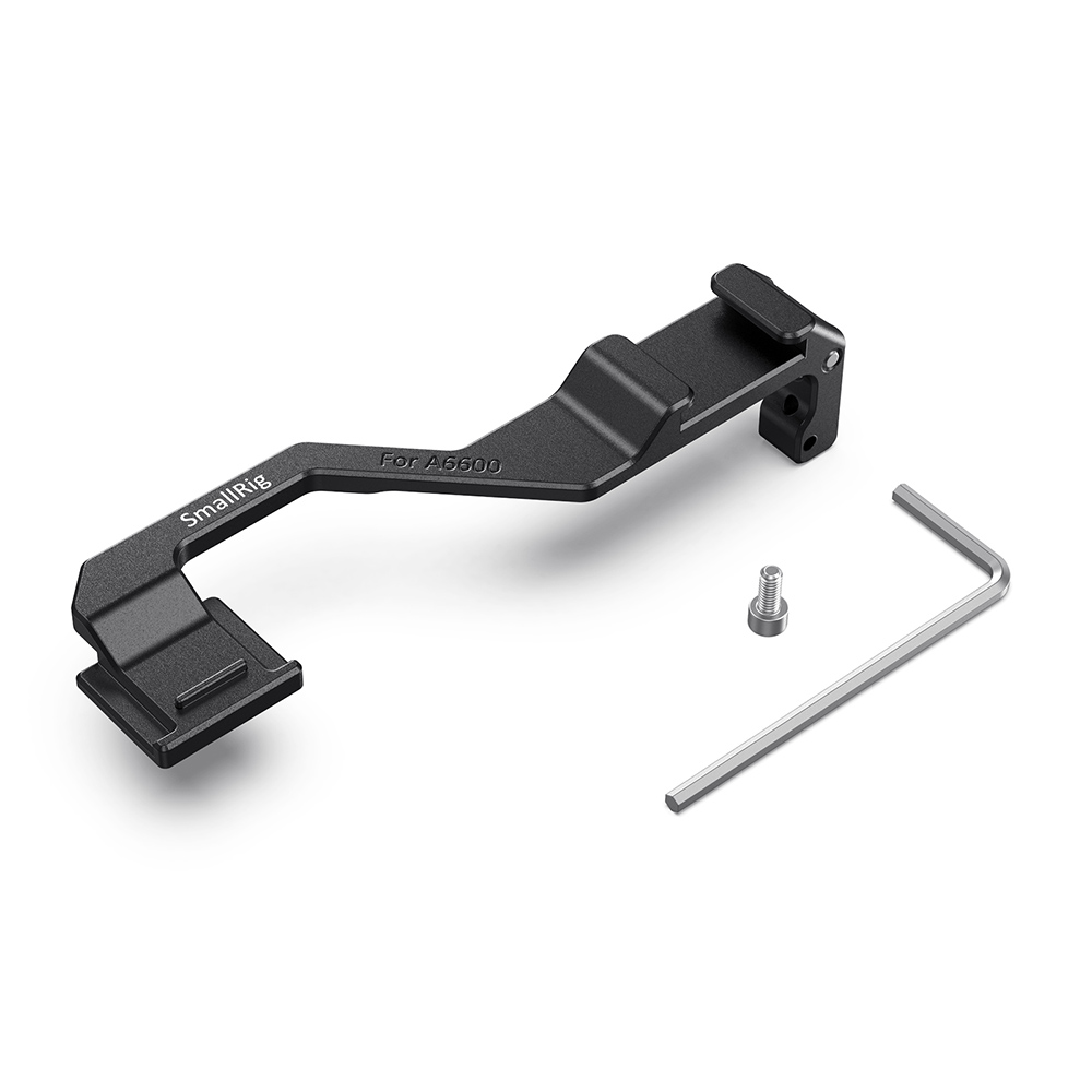 El BUC2496 está diseñado para permitir desplazar el soporte del pie de la cámara desde la parte superior hacia el lado derecho para colocar un micrófono o una luz, sin interferir con la pantalla abatible de la cámara Sony A6600. El adaptador se instala en el soporte de la cámara y en la ranura para la correa mediante un tornillo M2,5 en el lado derecho, para evitar que se tuerza. Está equipado con una almohadilla de goma que evita los arañazos. En el lateral del adaptador hay una abertura para una correa de mano o de hombro. El adaptador de zapata resulta especialmente útil al grabar desde la parte delantera de la cámara para vlogs o selfies. Además, también puede utilizar el adaptador de zapata con la montura L para la cámara Sony A6600 LCS2503.