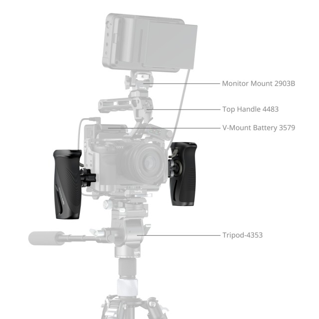 La empuñadura lateral giratoria SmallRig con tornillos de 1/4"-20 5194 está diseñada para facilitar la fotografía a mano alzada.
