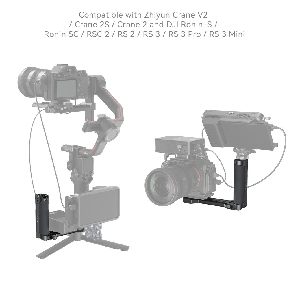 La empuñadura lateral SmallRig para los gimbals DJI Ronin-S/SC, Zhiyun Crane 2/V2 y Moza Air 2/AirCross 2 (2786) estádiseñada para reducir la fatiga de las manos y proporcionar puntos de sujeción para accesorios durante la grabación con gimbals. Esta empuñadura ergonómica permite sujetar los gimbals con ambas manos, reduciendo así la carga de peso en una sola mano. Se acopla a la parte inferior del gimbal mediante tornillos de montaje de 1/4" -20 y 3/8"-16.
