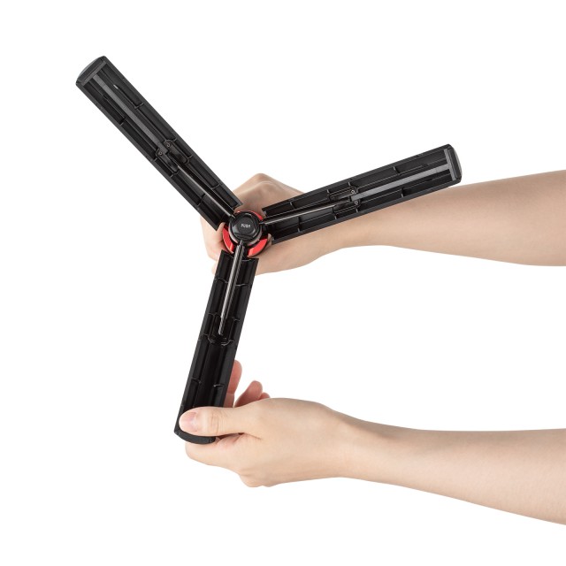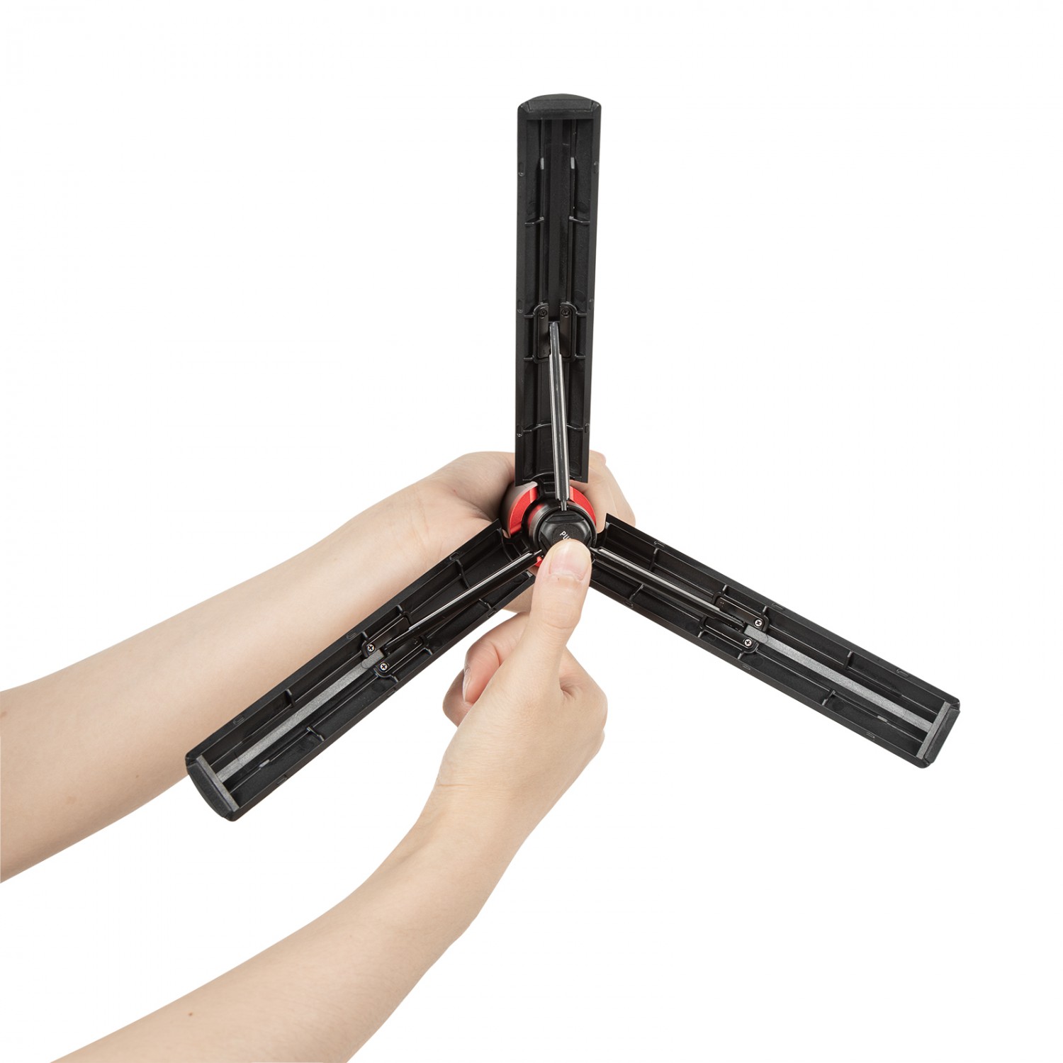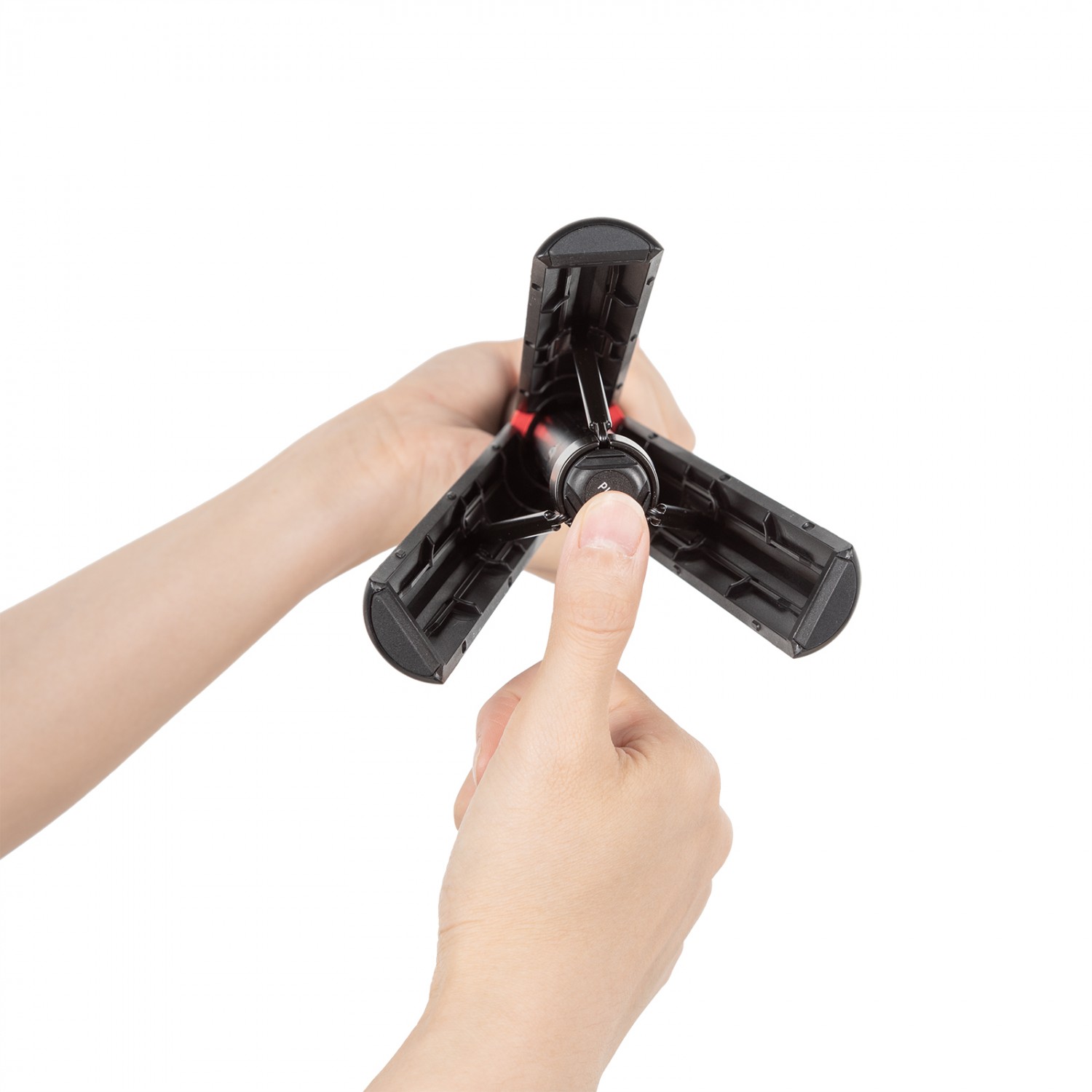 1. Al extender y retraer el tubo, el trípode se abre y se cierra automáticamente en la parte inferior. Por favor, no coloque las manos directamente sobre el trípode para evitar lesiones por pellizco.