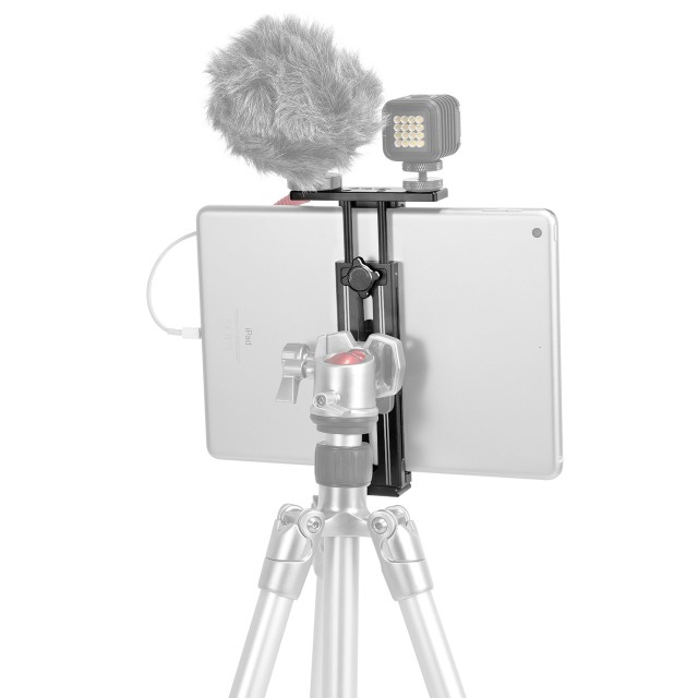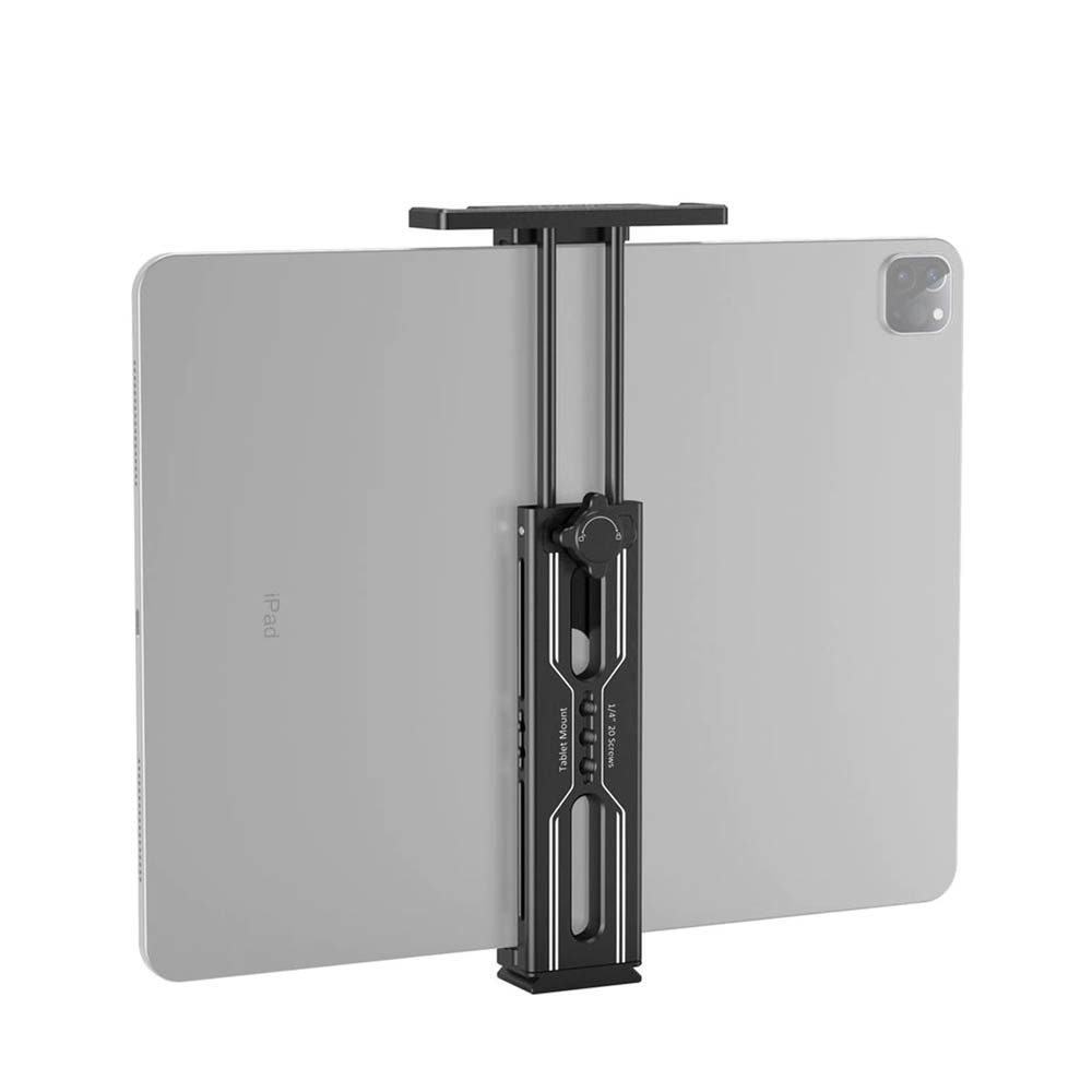 El soporte para tabletas SmallRig para iPad sirve para sujetar el iPad con mayor facilidad y montarlo. Es compatible con iPads de 7,9 a 12,9 pulgadas o con otras marcas de dimensiones similares, con o sin funda. Las almohadillas de goma integradas evitan que el iPad se raye durante el montaje. Se suministra con una base Arca-Swiss con rosca de 1/4 para una rápida fijación y desmontaje del trípode, con un peso ligero de 184 g.