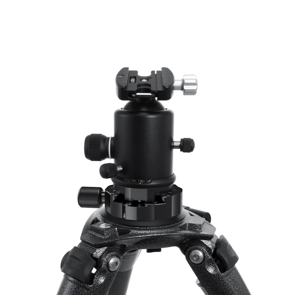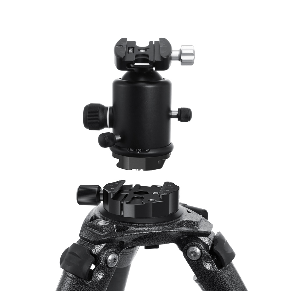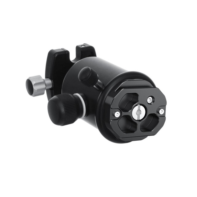 El KDBC2469 está diseñado para cambiar rápidamente entre diferentes tipos de cabezales de trípode en función de los requisitos de portabilidad, estabilidad y carga. Se suministra con una abrazadera de 65 mm de diámetro y una placa de 50 mm de diámetro. La abrazadera tipo Arca-Swiss se puede atornillar al trípode mediante un tornillo de 3/8'-16 y la placa se puede atornillar a la parte inferior del cabezal. Tanto la abrazadera como la placa están equipadas con topes de seguridad que evitan deslizamientos indeseados. La línea central en la abrazadera y la placa permite un posicionamiento preciso. Es ligera y compacta, con una capacidad de carga de hasta 4,5 kg.