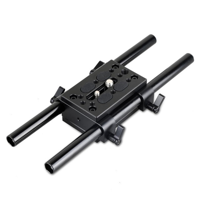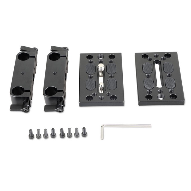 El kit de montaje para trípode SmallRig con bloque de riel de 15 mm 1798 combina dos placas de montaje para trípode SmallRig con un bloque de riel de 15 mm. Se utiliza para cámaras y videocámaras largas y pesadas en la parte delantera. Fíjelo a la placa del trípode con un tornillo de 3/8''-16 y otro de 1/4''-20, y luego podrá montar en él la placa base con cola de milano. Se fija a rieles de 15 mm para montar accesorios como follow focus, matte box, etc. La ranura de 40 mm permite equilibrar correctamente una cámara pesada en la parte delantera del trípode.