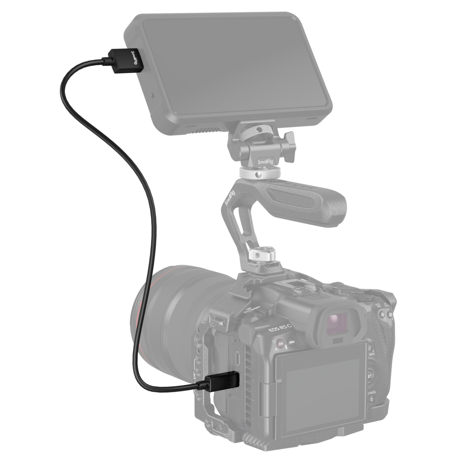 El cable de datos HDMI ultrafino 4K de SmallRig (D a A) (55 cm) 3043B es un cable HDMI de alta calidad (de Micro HDMI a HDMI estándar) diseñado específicamente para tu equipo de cámara. Es una versión HDMI 2.0, admite resoluciones de hasta 4K a 60 Hz y es compatible con versiones anteriores. Gracias a su diseño ultradelgado, con un diámetro exterior de 3,6 mm, es más fino y flexible que un cable HDMI convencional. Los conectores de perfil bajo no bloquearán los puertos adyacentes. Es el cable HDMI ideal para tu equipo de cámara, con una longitud de 55 cm. La cinta para organizar cables incluida te ayudará a mantener tu equipo ordenado.