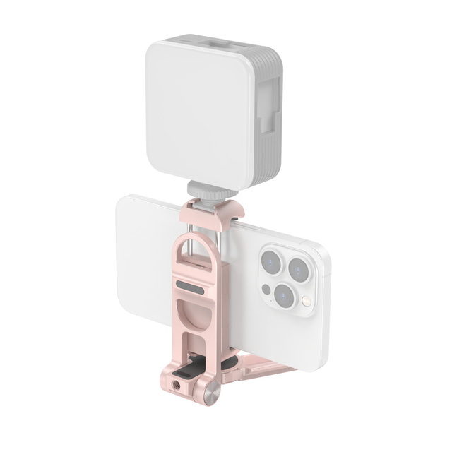 El soporte universal para teléfonos inteligentes SmallRig 3729 está diseñado para usuarios de teléfonos inteligentes que desean utilizarlos para tomar fotografías, realizar retransmisiones en directo, grabar vlogs, entrevistas, etc. Es compatible con la mayoría de los teléfonos inteligentes del mercado con un ancho de entre 5,5 cm y 8,8 cm. Utiliza resortes internos para un montaje y desmontaje rápido del smartphone. Se suministra con 2 zapatas frías que permiten montar diversos accesorios. Su placa base, compatible con el sistema Arca-Swiss, se puede fijar a un trípode tipo Arca y también se puede utilizar como empuñadura para fotografiar a mano alzada. El soporte se puede utilizar como base para el smartphone abriendo la placa base hacia ambos lados. Permite un giro de 360 grados, un ajuste de inclinación de 270 grados y se puede plegar y guardar en el bolsillo. Las almohadillas de goma integradas ayudan a proteger el teléfono de arañazos.