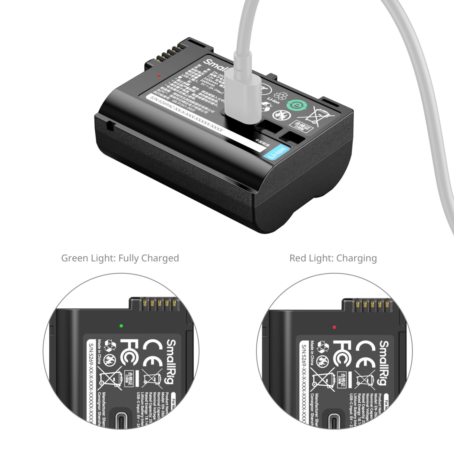 La batería SmallRig 5269 EN-EL15c USB-C es una batería de iones de litio de alta capacidad, con 2600 mAh, diseñada para cámaras sin espejo y cámaras réflex digitales Nikon de la serie Z. Ofrece una carga rápida a través de USB-C, una descodificación completa de la cámara sin ventanas emergentes y una alimentación fiable para sesiones fotográficas más largas.