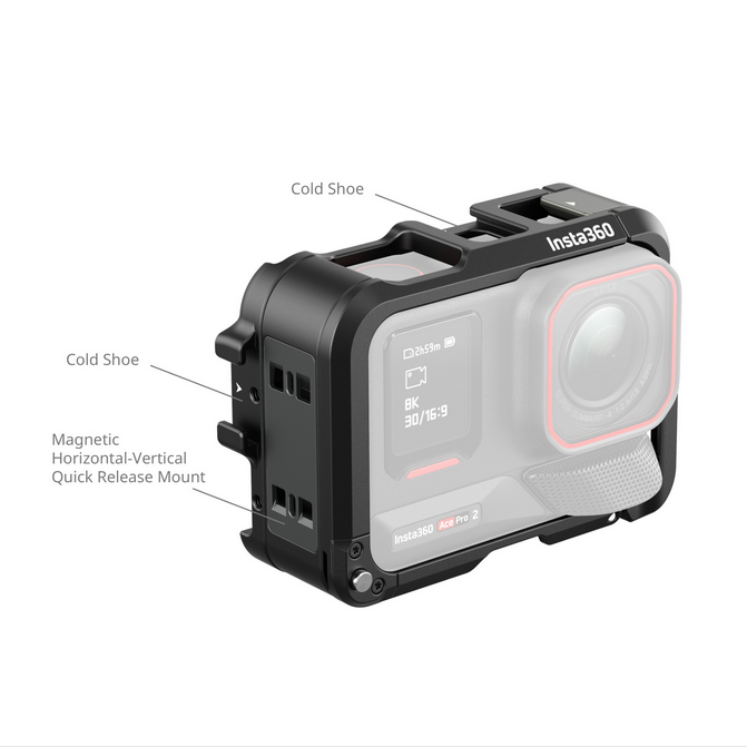 El SmallRig Utility Frame para Ace Pro 2 / Ace Pro 5000 es una jaula protectora versátil diseñada para integrarse a la perfección con las cámaras Insta360 de la serie Ace Pro. Permite acceder fácilmente a las baterías para cambiarlas y, al mismo tiempo, admite diversos accesorios para una mayor flexibilidad a la hora de grabar.