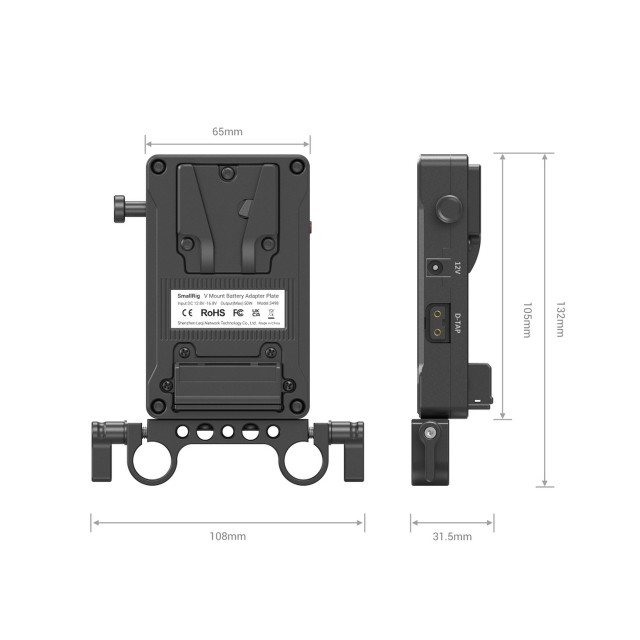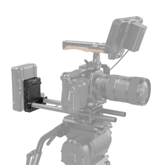 La placa adaptadora SmallRig V Mount Battery Adapter Plate (versión básica) con doble abrazadera de varilla 3498 está diseñada para proporcionar una mayor autonomía a tu equipo de cámara mediante una batería con montura en V. Su soporte estándar de fijación rápida en V es compatible con la mayoría de las baterías con montura en V. Los puertos de salida, que incluyen un puerto de 8 V CC, un puerto de 12 V CC y dos puertos D-Tap de 14,8 V, funcionan con la batería de montaje en V y alimentan la cámara y otros dispositivos (por ejemplo, monitor, transmisor, follow focus, teléfono móvil, etc.). Está equipado con un interruptor de encendido que controla de forma rápida y cómoda todos los puertos de salida, y se suministra con una abrazadera de doble barra de 15 mm, compatible con el sistema de rieles de 15 mm. Además, varios orificios con rosca de 1/4"-20 permiten conectar otros accesorios, como una superabrazadera y un soporte de brazo mágico.