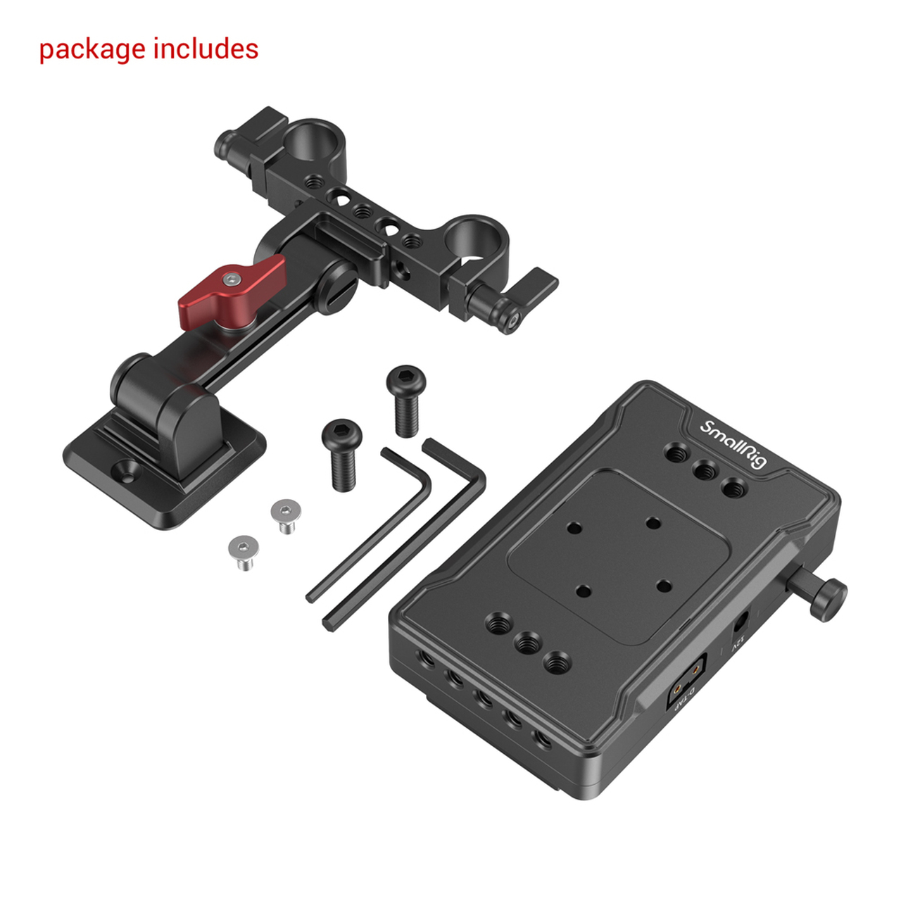 La placa adaptadora SmallRig V Mount Battery Adapter Plate (versión básica) con brazo extensible 3499 está diseñada para proporcionar una mayor autonomía a tu equipo de cámara mediante una batería con montura en V. Su soporte V de fijación rápida estándar es compatible con la mayoría de baterías con soporte V. Los puertos de salida, que incluyen un puerto de 8 V CC, un puerto de 12 V CC y dos puertos D-Tap de 14,8 V, funcionan con la batería para alimentar la cámara y otros dispositivos (por ejemplo, un monitor, un transmisor, un follow focus, un teléfono móvil, etc.). Está equipado con un interruptor de encendido que controla de forma rápida y cómoda todos los puertos de salida, y se suministra con una abrazadera de doble barra de 15 mm con brazo extensible ajustable, que admite un sistema de barras de soporte de 15 mm y permite reubicar rápidamente la placa adaptadora de la batería. Además, gracias a varios orificios roscados de 1/4"-20, puedes conectar otros accesorios, como un soporte superclamp y un brazo mágico.