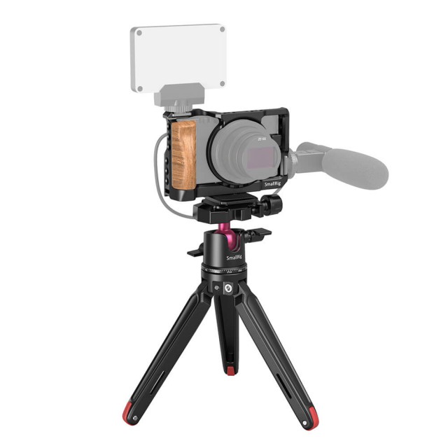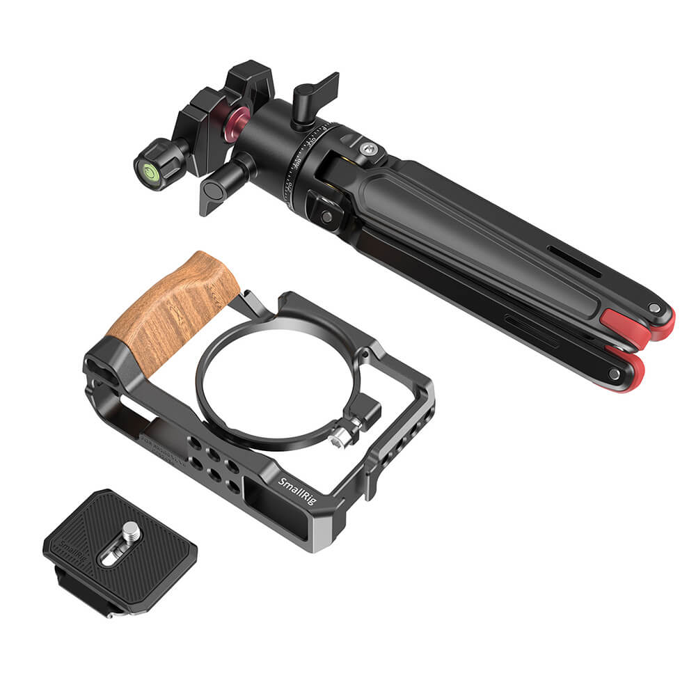 El kit SmallRig Vlog Kit KGW115 está diseñado exclusivamente para vlogueros.Incluye una jaula SmallRig para las cámaras Sony RX100 VII y RX100 VI (CCS2434), un minitrípode con rótula panorámica (BUT2664) y una placa de fijación rápida (tipo Arca-Swiss/Manfrotto RC2) (APU2364). Ofrece numerosas posibilidades para los vlogueros según sus necesidades durante la grabación, por lo que resulta muy práctica y cómoda para ellos.