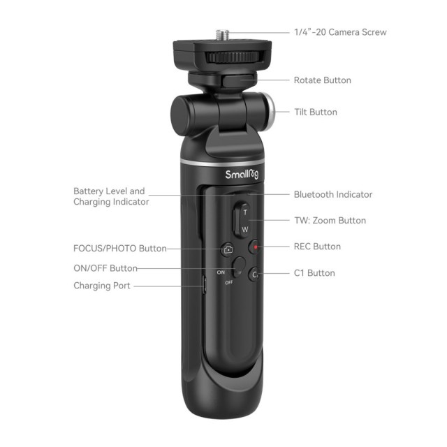 4. El trípode se extiende 15 cm, gira 360° y se inclina 180°, lo que permite un campo de visión más amplio y grabar desde múltiples ángulos