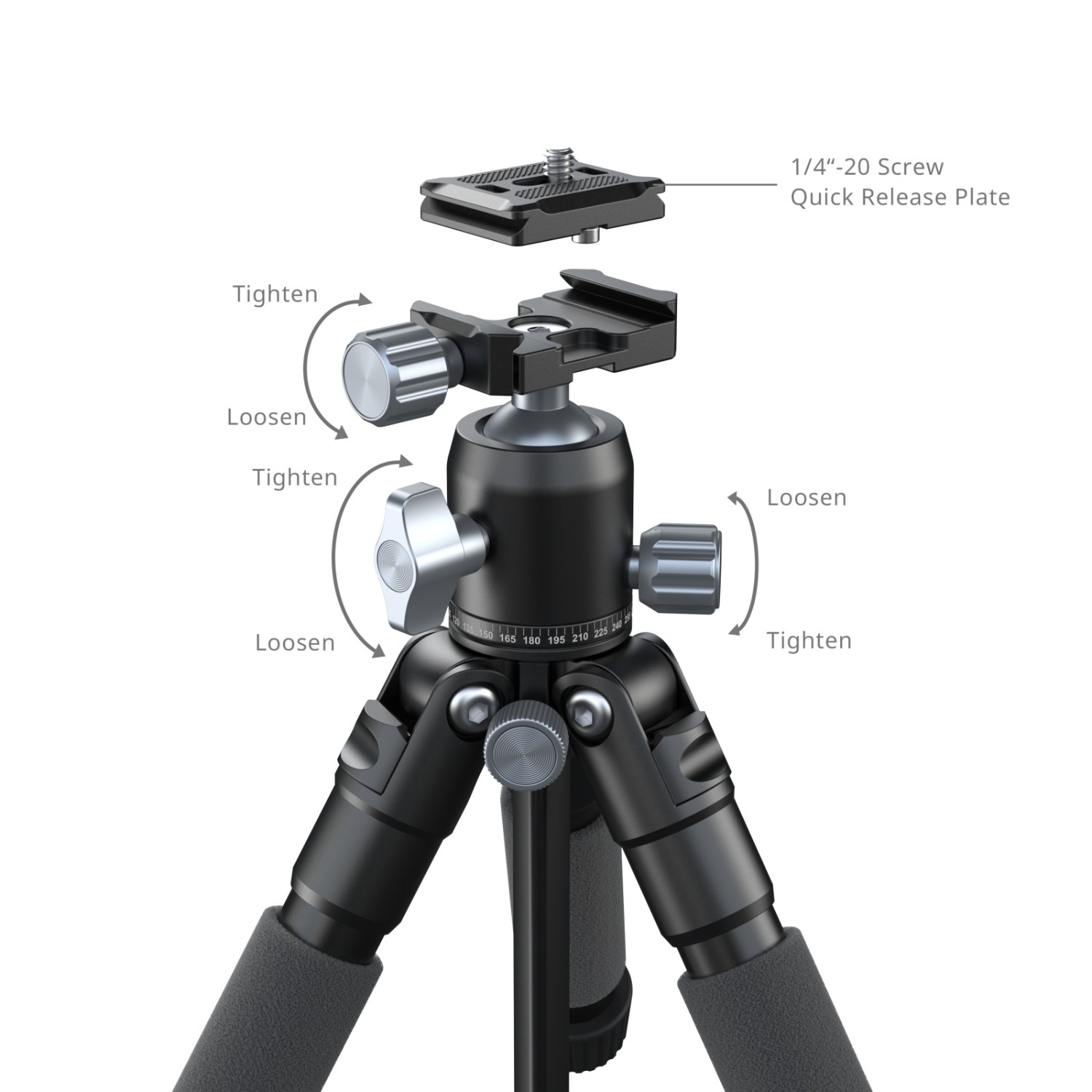 El trípode de mesa portátil SmallRig VT-20Pro, fabricado en aleación de aluminio 5470, está diseñado para fotografía, grabación de vídeo y retransmisiones en directo. El trípode cuenta con una rosca de 1/4"-20 en la parte superior para fijar la cámara y ampliar los accesorios, mientras que la base del cabezal está equipada con una rosca de 3/8"-16, lo que garantiza la compatibilidad con una amplia gama de equipos fotográficos.