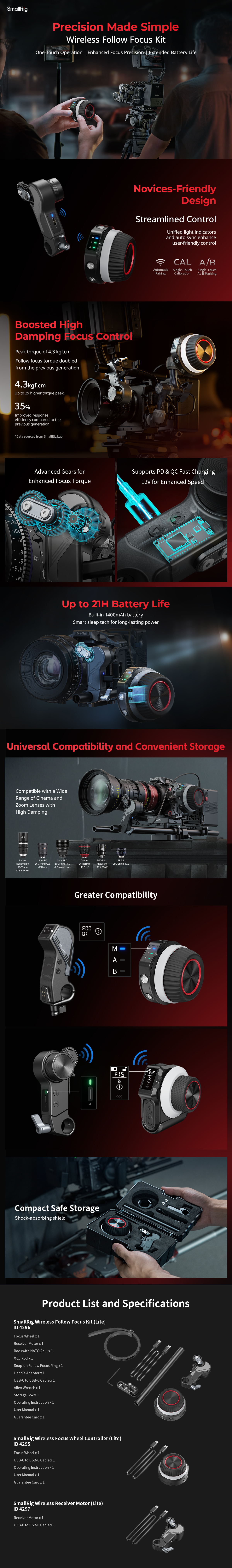 El receptor inalámbrico SmallRig (Lite) 4297 está diseñado para ofrecer un alto par motor y una baja latencia durante la grabación con enfoque posterior. El motor cuenta con indicadores luminosos rojos y azules que indican el estado de la conexión y el canal (indicador azul: F00-1; indicador verde: F15-1), lo que ofrece una guía intuitiva y fácil de usar para…