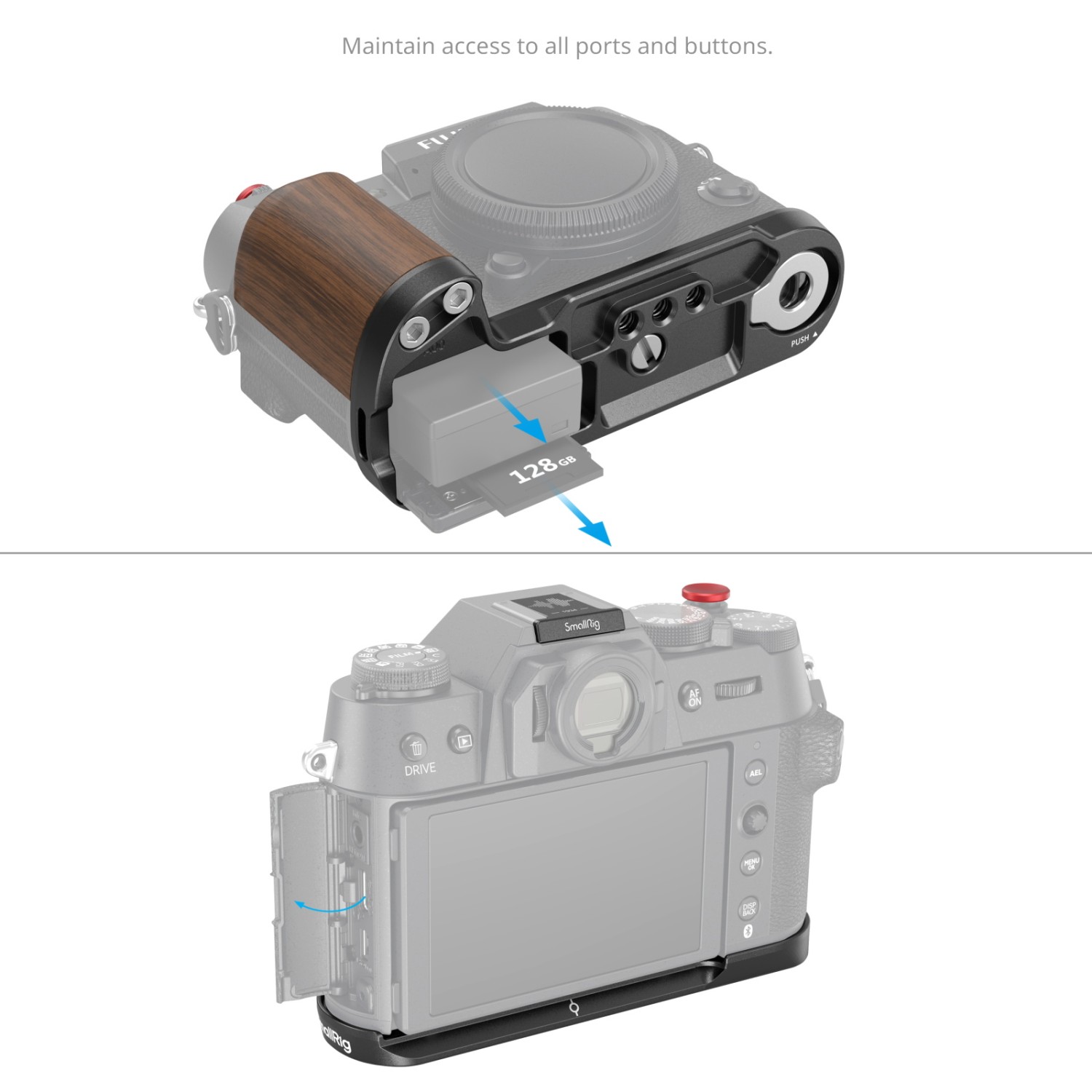 El agarre de madera en forma de L de SmallRig para la FUJIFILM X-T50 (negro) 4784 está diseñado para mejorar el agarre de la cámara. La empuñadura en forma de L se fija a la cámara mediante un tornillo de 1/4"-20 en la parte inferior, y las almohadillas de silicona integradas evitan que se raye. La empuñadura está fabricada en madera maciza natural, es elegante,…