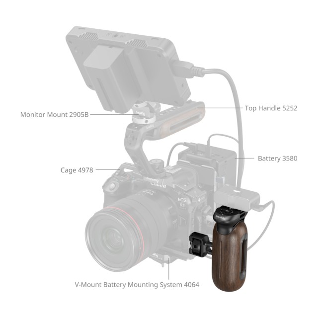 Empuñadura lateral de madera SmallRig con tornillos de fijación de 1/4"-20 y 3/8"-16 ARRI