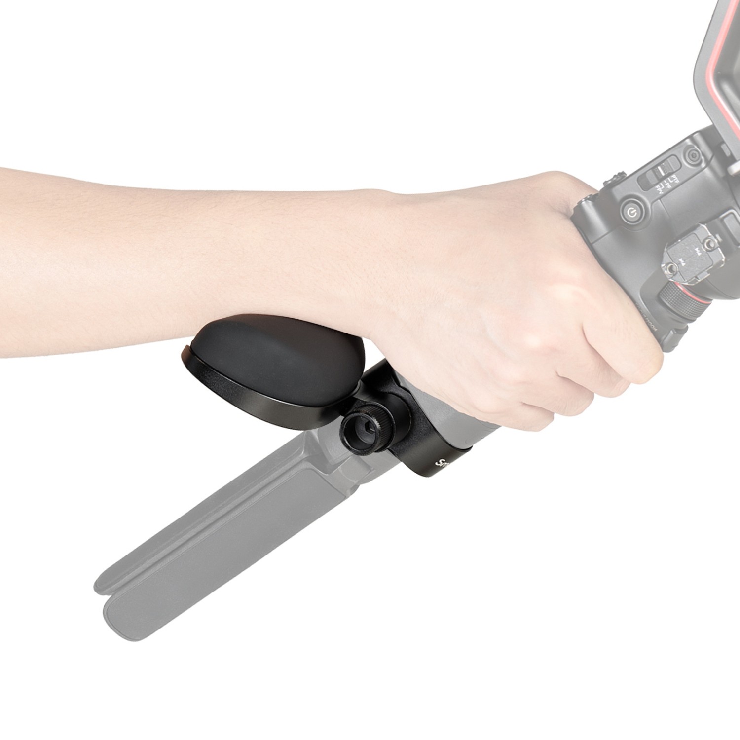 El soporte para muñeca SmallRig para la serie DJI RS 4248 se fija a la parte inferior del DJI RS 3 / RS 3 Pro / RS 2 mediante un solo tornillo de 1/4"-20 y cuenta con una almohadilla ergonómica de silicona blanda para facilitar la grabación. Gracias a la palanca giratoria, puedes ajustar la altura del soporte para muñeca sin necesidad de herramientas. Es fácil de usar con estabilizadores de diferentes alturas. Apto para personas con diferentes tamaños de mano. Dispone de orificios con roscas de 1/4"-20 y 3/8"-16 para trípodes u otros dispositivos, así como dos orificios QD para las correas de hombro 4118 / 4383.
