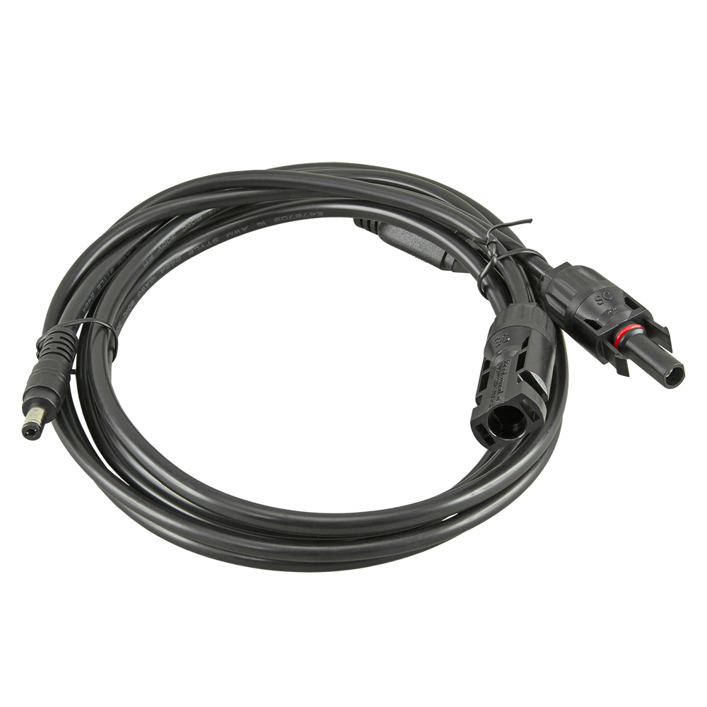 El paquete incluye 2 cables que se pueden conectar mediante conectores MC4. Gracias a una gama de 4 conectores diferentes (DC5521, DC7909, Anderson y XT60), este panel solar se puede conectar a una amplia variedad de estaciones de alimentación, como la Jupio PowerBOX 500 y la Jupio PowerBOX 1000.