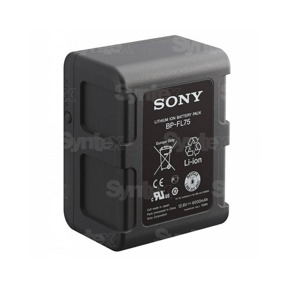 La Sony BP-FL75 es una batería de tipo V-mount Olivine (fosfato de hierro y litio) para las cámaras de la serie PMW-Fxx. Esta batería ofrece una ventaja significativa en cuanto a la duración de los ciclos de carga en comparación con las baterías convencionales de iones de litio. La batería Sony BP-FL75 es compatible con el cargador Sony BC-L90, que puede cargarla completamente en 70 minutos.