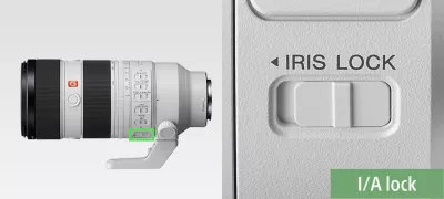 El interruptor de bloqueo del diafragma evita cambios de exposición no deseados durante la toma. Una vez bloqueado, el diafragma queda fijado en la posición [A] o se puede girar entre cualquier ajuste manual de F2,8 a F22. Cuando está desbloqueado, el anillo del diafragma se puede girar entre la posición [A] y cualquier ajuste manual sin restricciones. Más información sobre el bloqueo I/A
