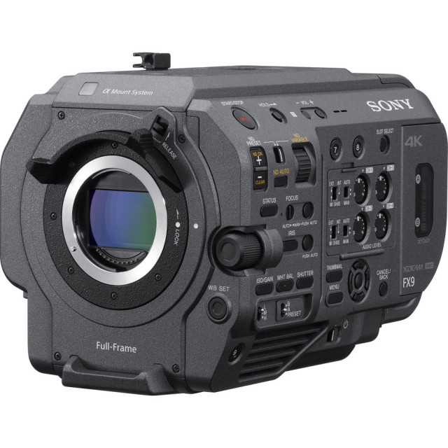 La Sony PXW-FX9 es una nueva y potente cámara 4K equipada con un sensor CMOS Exmor R de 6K y formato completo con un rango dinámico de 15 pasos; una precisa montura E-Mount de acero inoxidable; una amplia gama de entradas y salidas, incluyendo salidas 12G-SDI y HDMI y Wi-Fi; funciones de sincronización; el avanzado sistema de enfoque automático Fast Hybrid AF con detección de rostros; un giroscopio interno para una estabilización de imagen perfecta; grabación de hasta cuatro canales de audio; grabación de 10 bits 4:2:2 en dos tarjetas XQD; y compatibilidad con grabación interna en resolución UHD (3840 x 2160) y HD (1920 x 1080) con una velocidad de fotogramas de 1 a 60 fps en los códecs XAVC-I (hasta 600 Mb/s), XAVC-Long y MPEG HD.