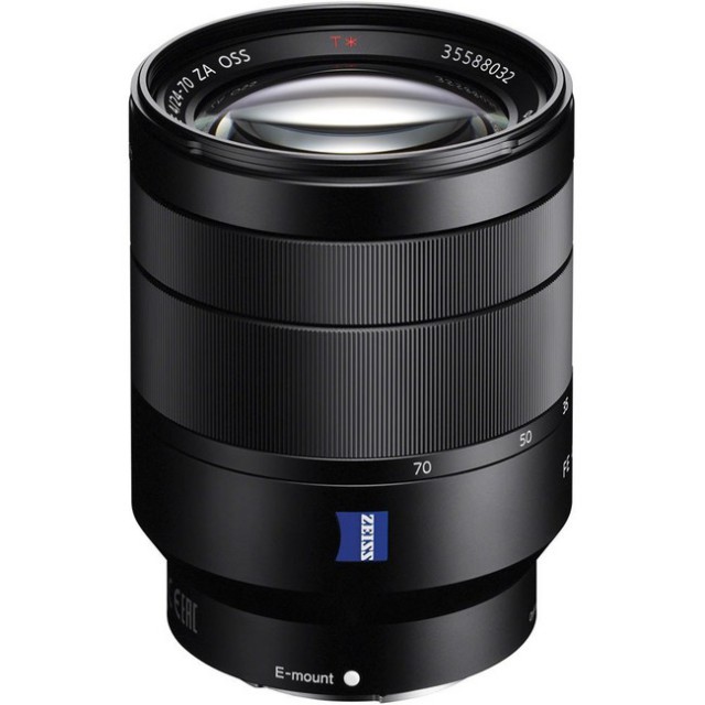 El objetivo cuenta con un rango de distancias focales básico de 24-70 mm (36–105 mm en cámaras NEX/ALPHA con sensor APS-C), un sistema óptico de primera clase de la legendaria marca ZEISS Vario Tessar T*, una potente estabilización de imagen, una apertura constante de f/4 en todo el rango de distancias focales, diafragma de 7 láminas moldeadas para un desenfoque de fondo perfecto (bokeh), un rápido motor paso a paso de enfoque automático, una construcción robusta de aleaciones ligeras de aluminio y un sellado de nivel profesional.