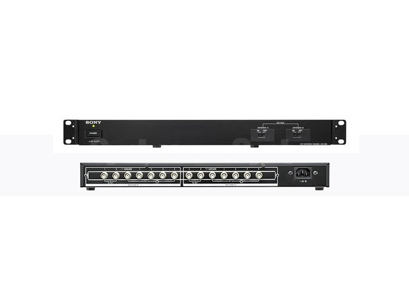 Divisor de antena UHF para el sistema inalámbrico digital DWX. Ofrece varias salidas para cuatro receptores. Permite el funcionamiento multicanal en combinación con el MB-8N y el WRU-8N o el MB-X6 y el WRU-806B. La salida en cascada se puede utilizar para otros distribuidores de antena o receptores. Dos pares de entradas de antena para cuatro antenas AN-820A amplían el área de cobertura del sistema de micrófonos inalámbricos.