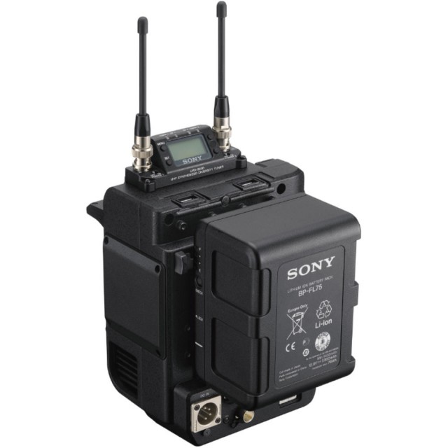 Ideal para la producción de noticias sobre el terreno, la unidad de extensión añade una ranura para receptores de audio inalámbricos que permite la compatibilidad con receptores como los de las series DWX y URX.